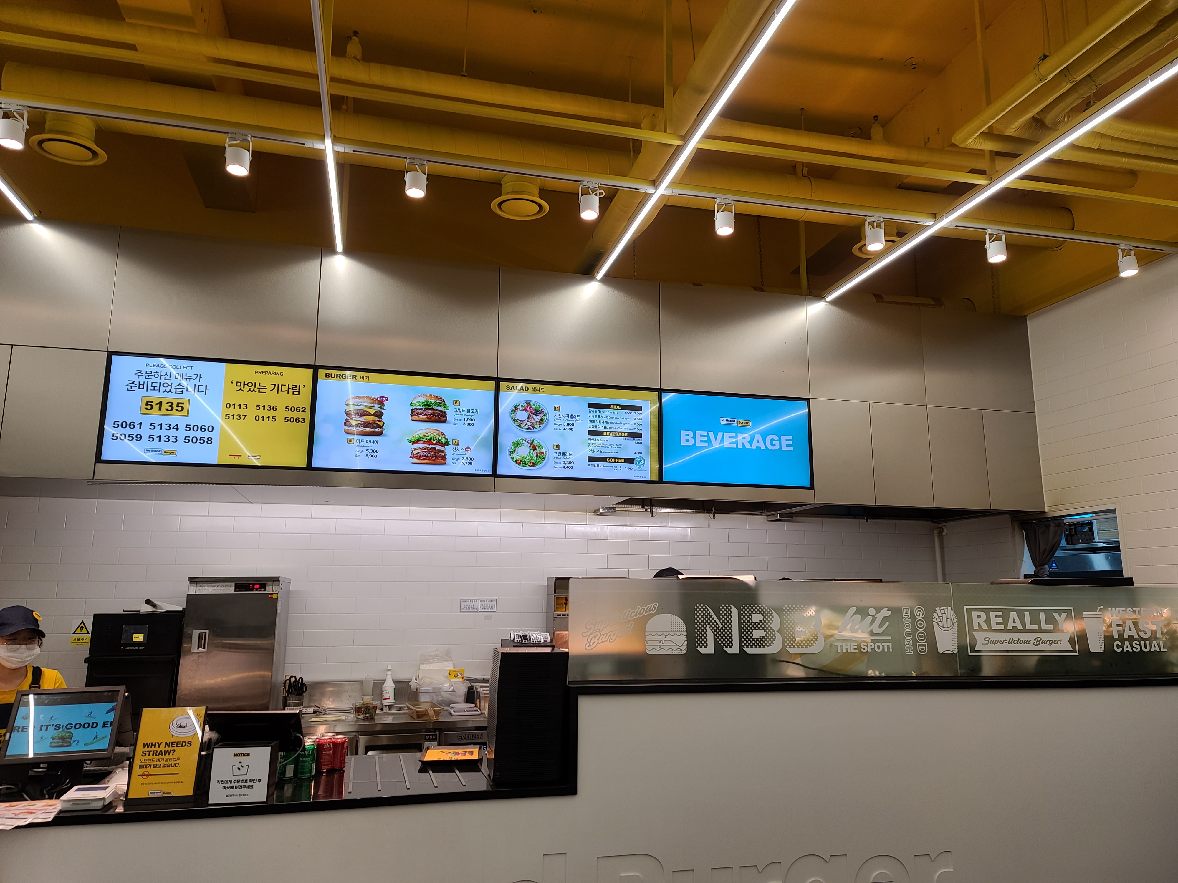 노브랜드 버거는 이런식으로 키오스크를 활용해서 주문을 하도록 되어있습니다.