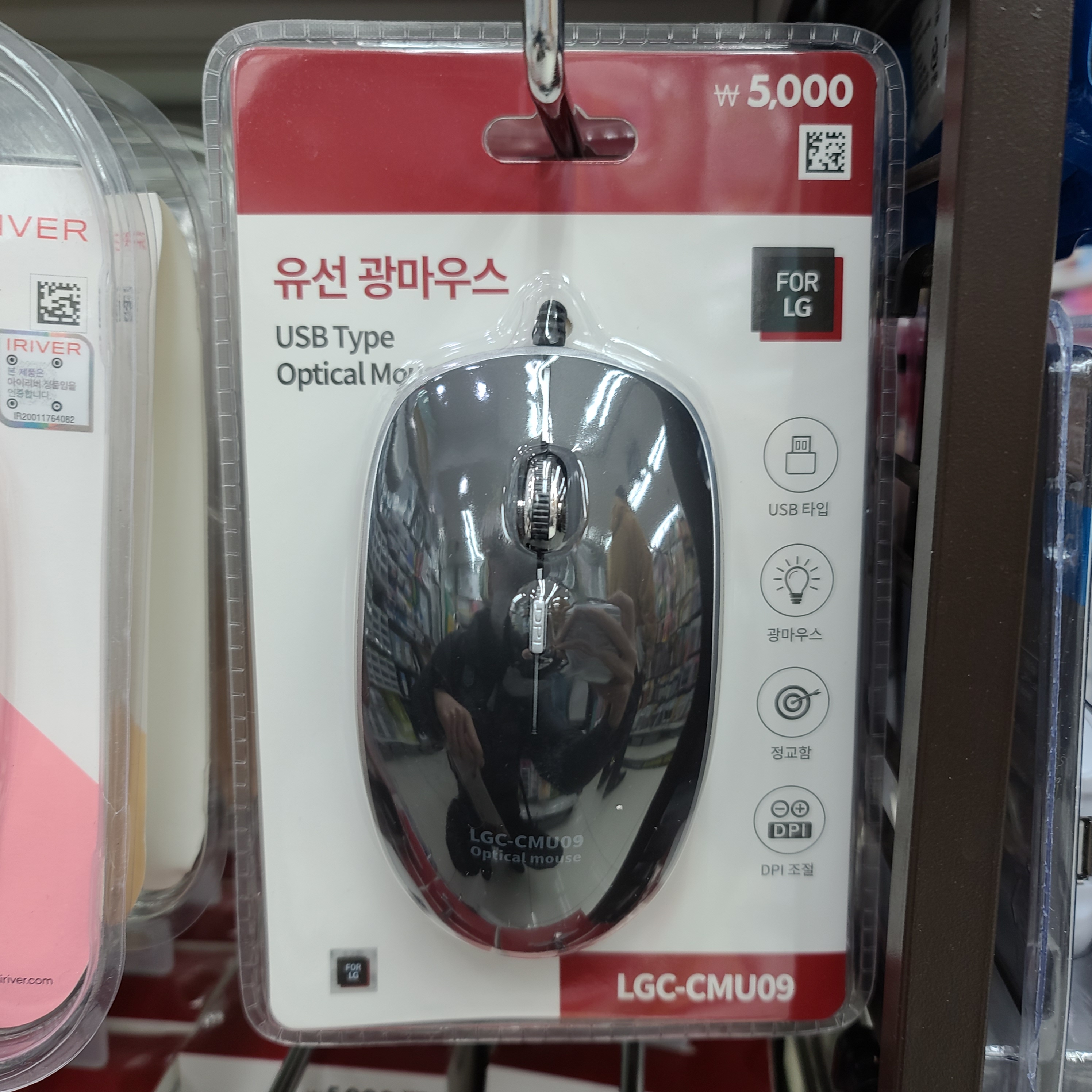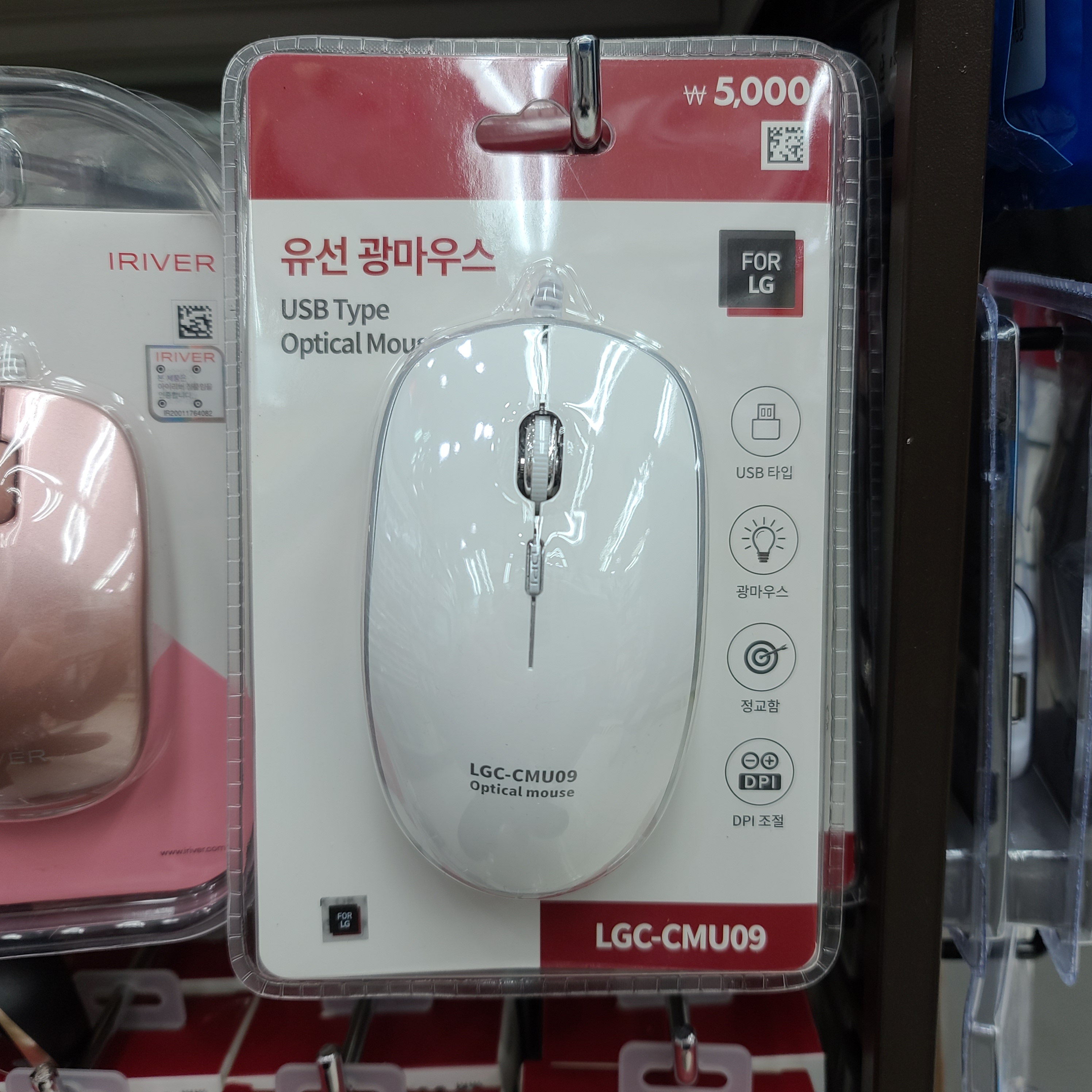 먼저, 다이소 매장 안에 진열되어 있는 다이소 유선 마우스 LGC-CMU09을 살펴보도록 하겠습니다.