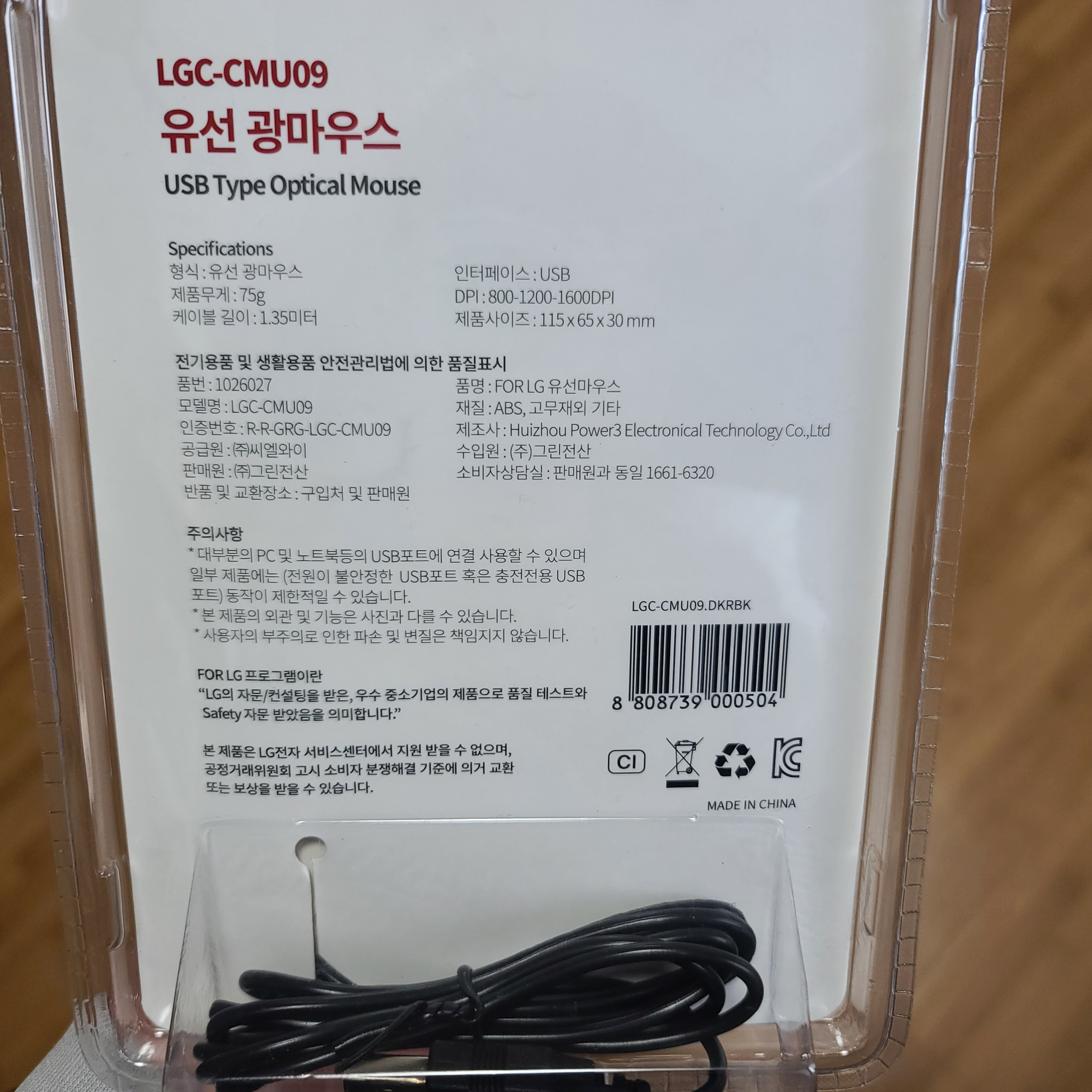 사무용으로 사용하기 좋은 유선마우스는 LGC-CM09인 것 같습니다.
