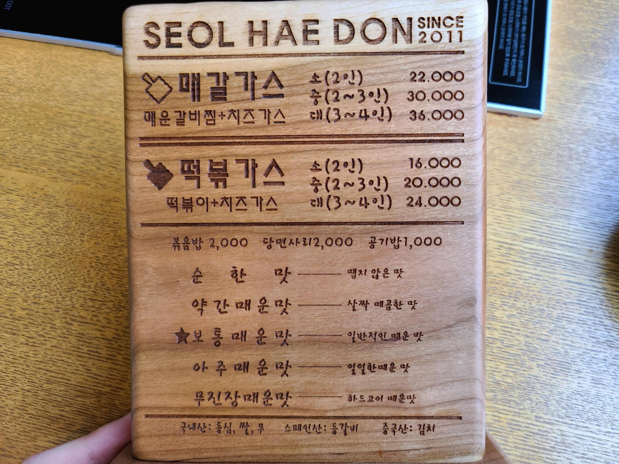 먼저, 대전 설해돈의 메인 메뉴가 적힌 메뉴판을 살펴보도록 하겠습니다.