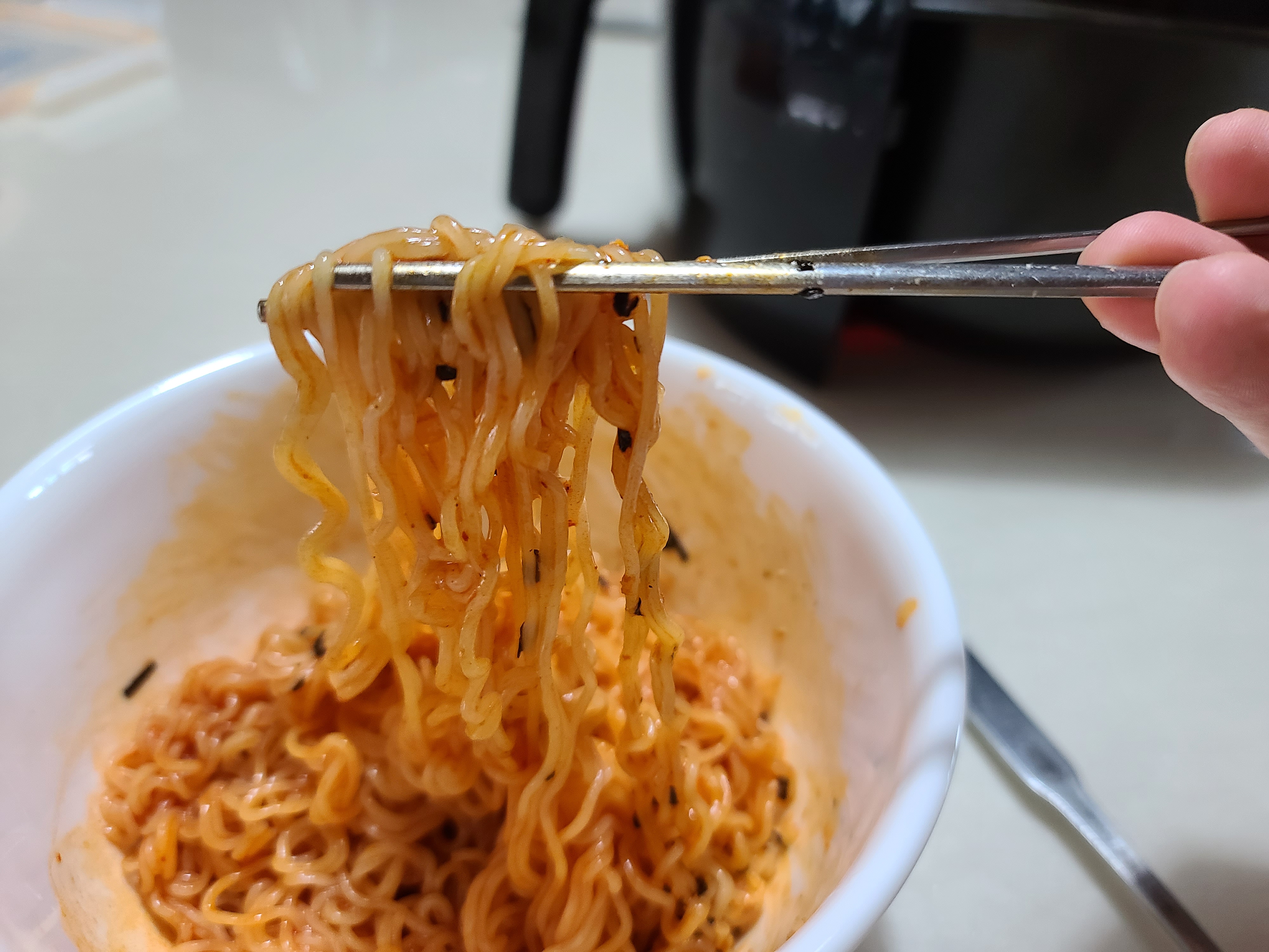 일반 라면보다는 확실히 면의 두께가 얇습니다.