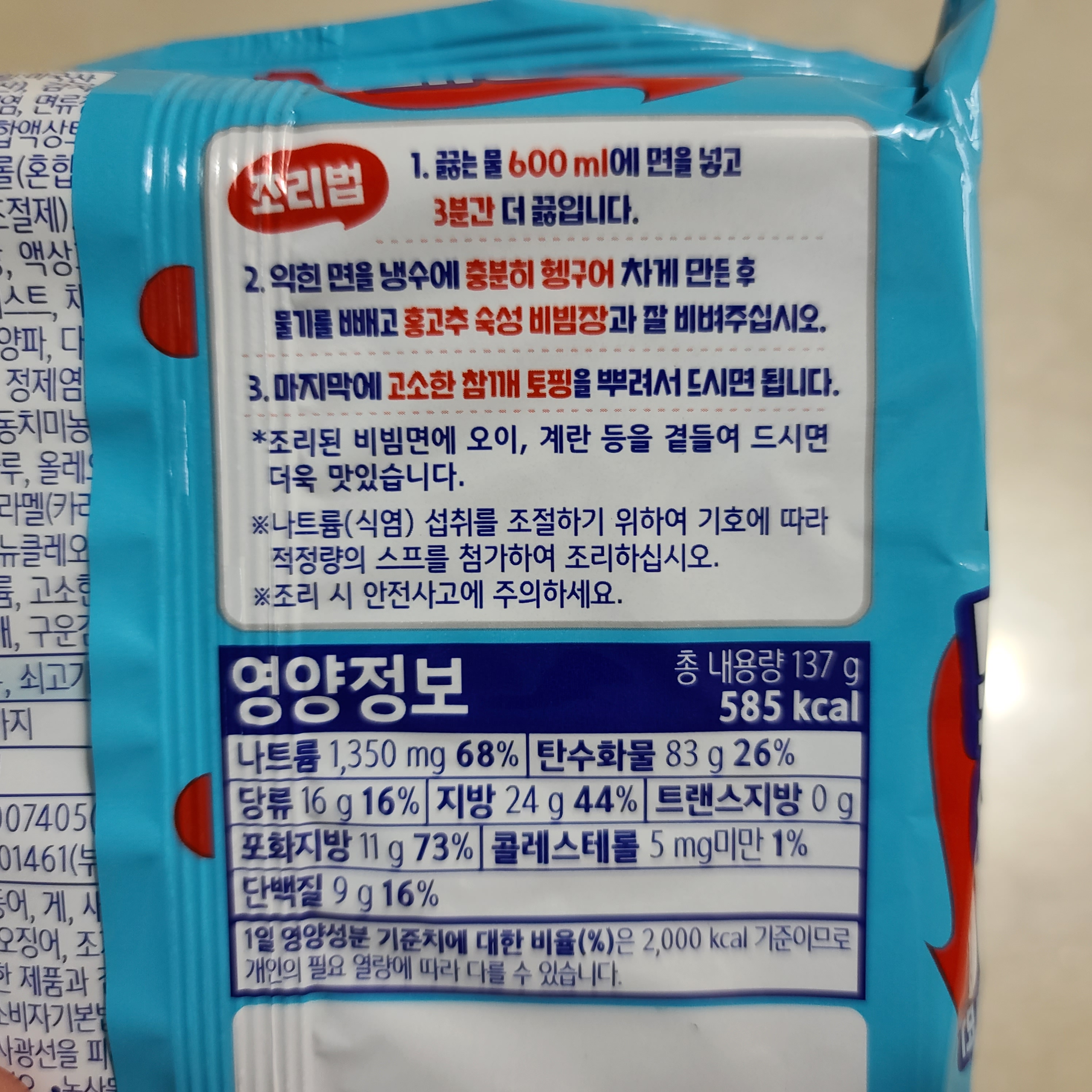 다른 인스턴트 비빔면들과 크게 차이나는 부분은 없는 것 같습니다.