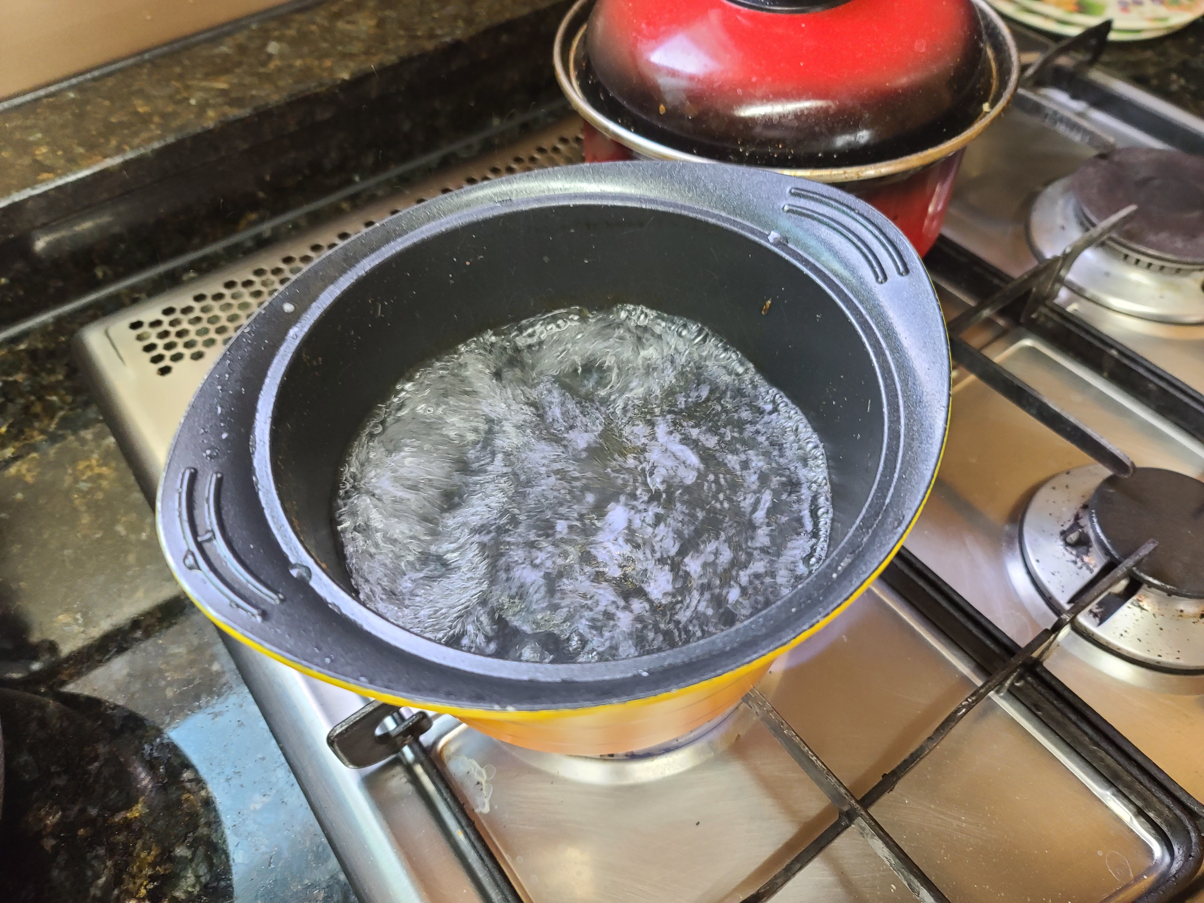 다 끓은 물을 냄비에 넣어주도록 하겠습니다.