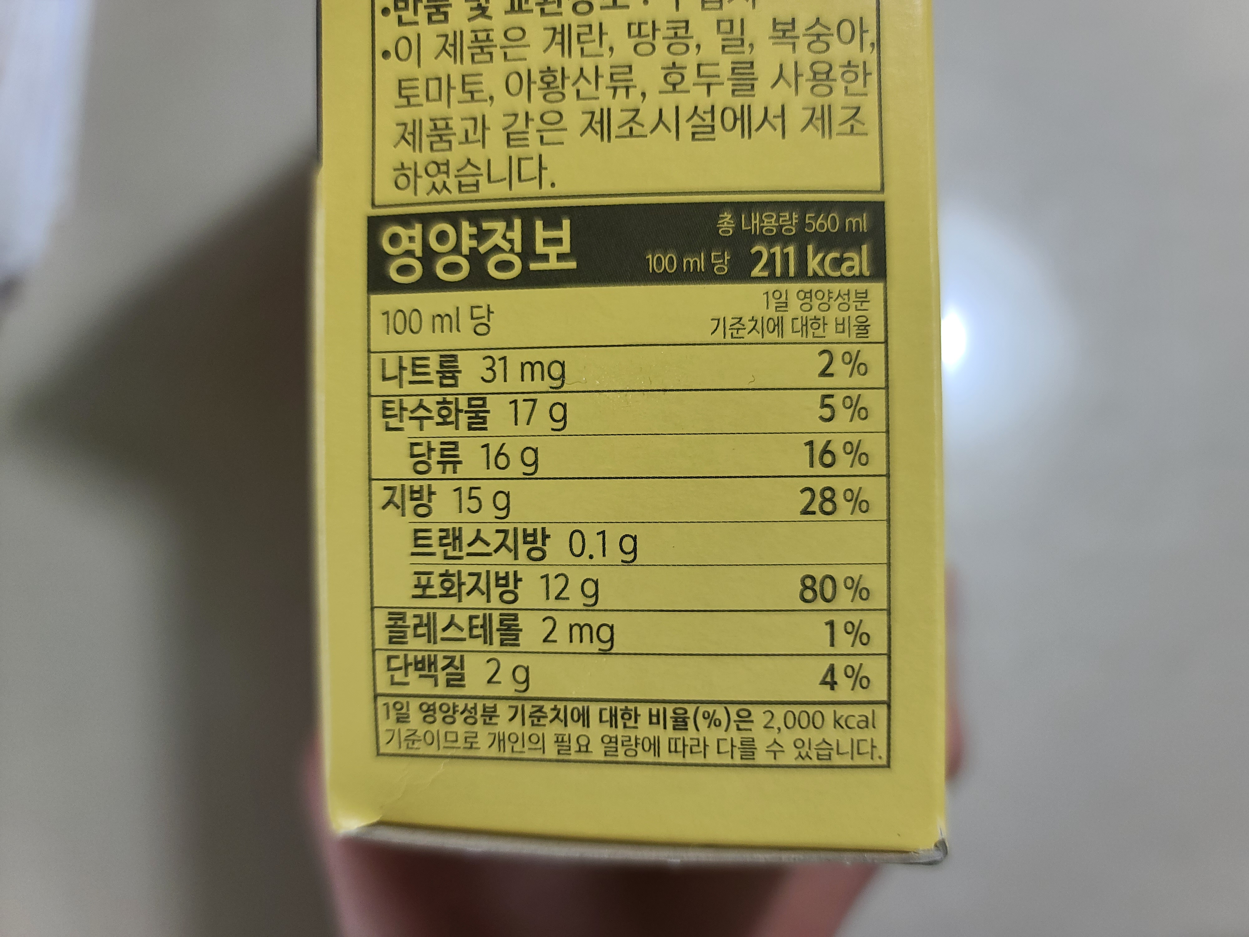 아.. 또 열 받게 100ml당 영양정보를 적어놨습니다.