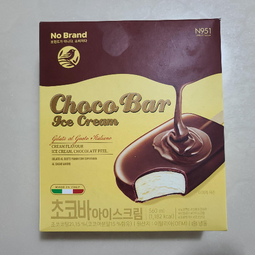 노브랜드 초코바 아이스크림 겉면에는 Made In ITALY라고 쓰여있다는 것을 알 수 있습니다.