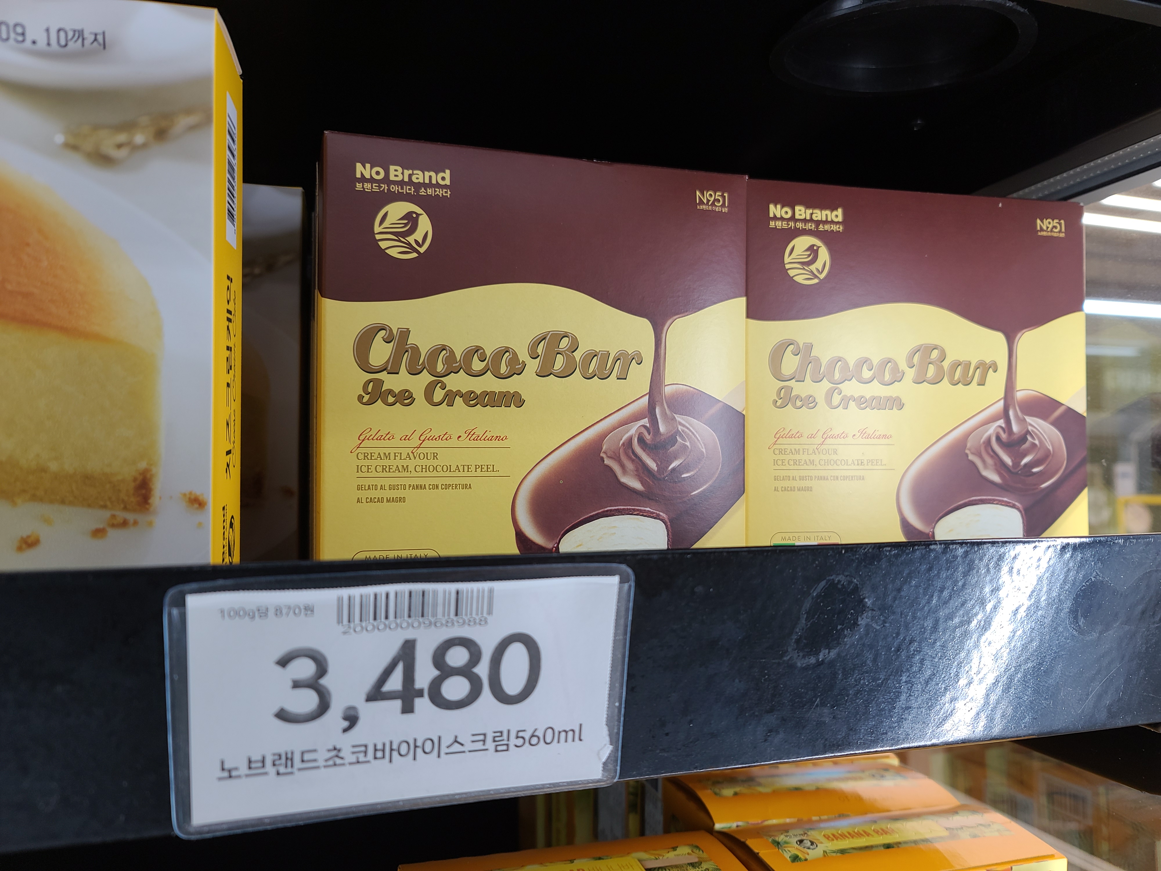 노브랜드 초코바 아이스크림은 560ml에 3,480원입니다.