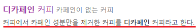위에 나오는 디카페인 커피의 뜻을 참고하면