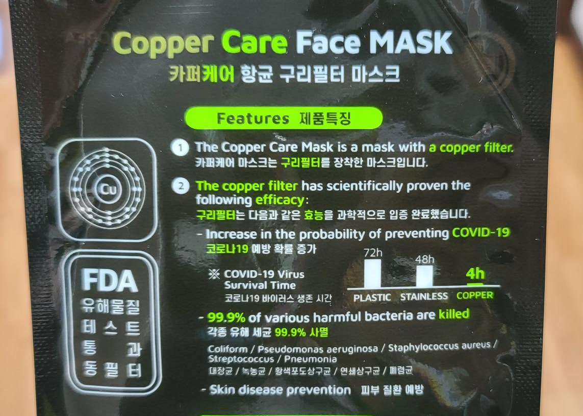 하지만 다른 마스크는 갖고 있지 않은 장점을 이 구리 필터 마스크는 갖고 있습니다.