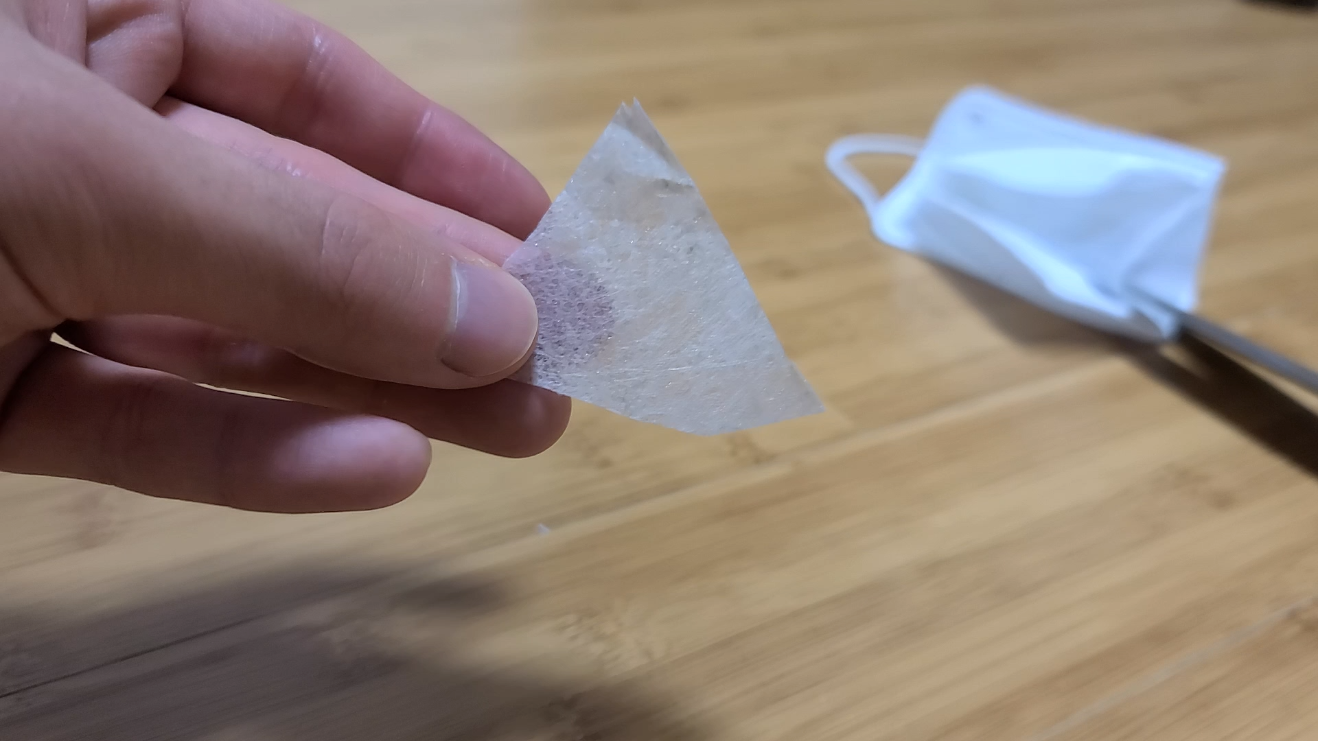 입냄새가 안 나는 게 너무 신기해서 제가 직접 마스크를 잘라서 구리 필터를 추출(?)해봤습니다.
