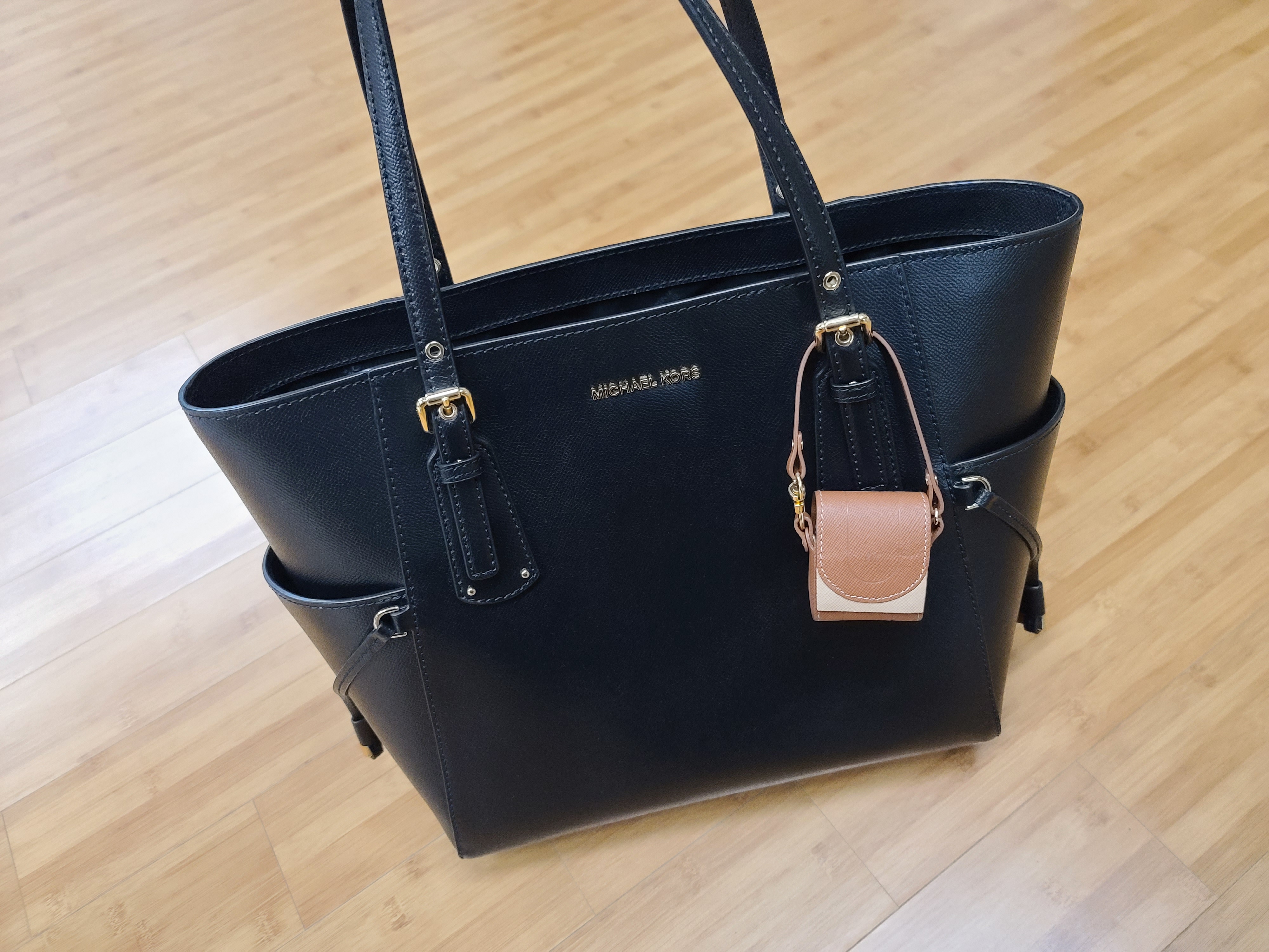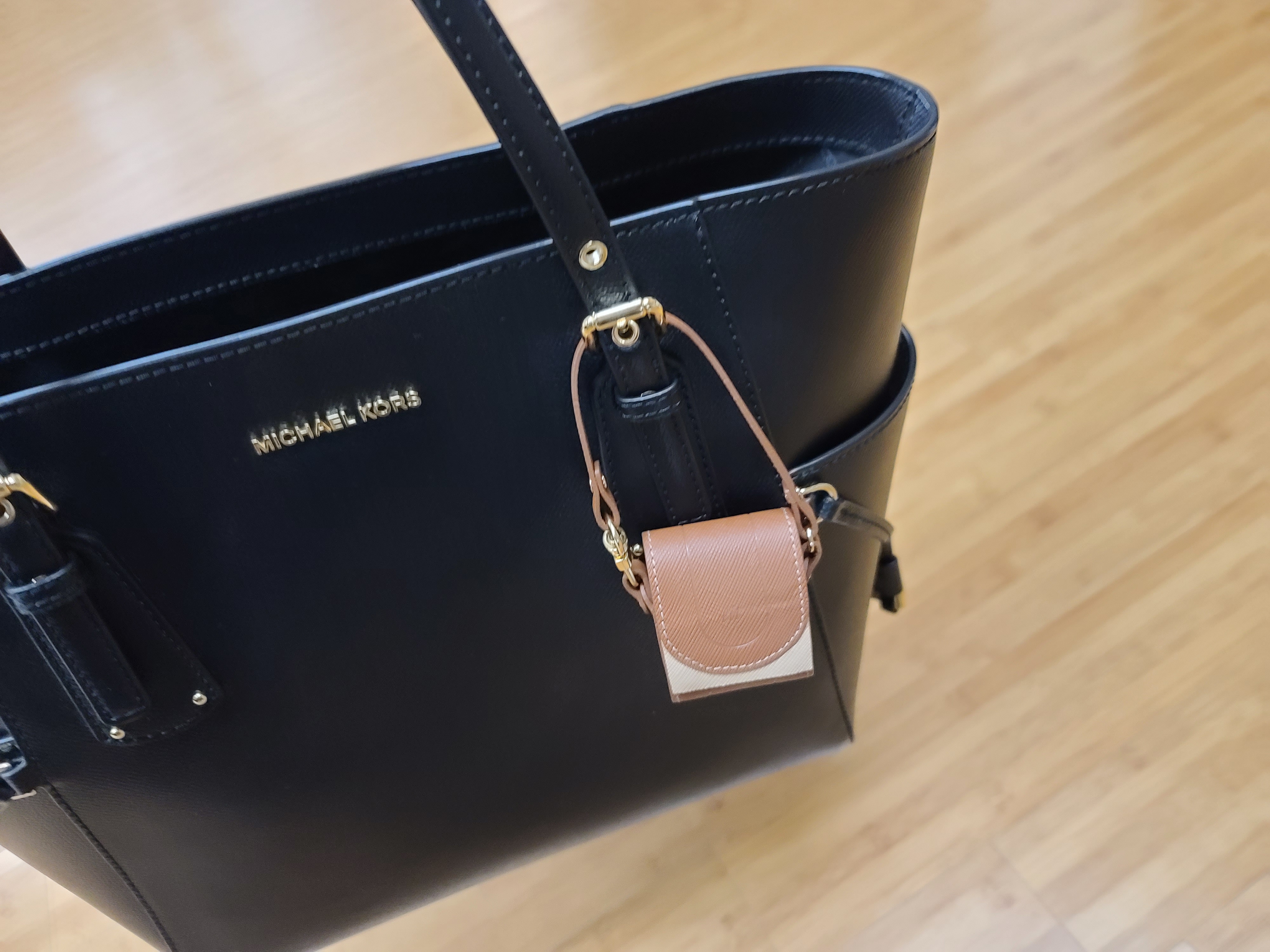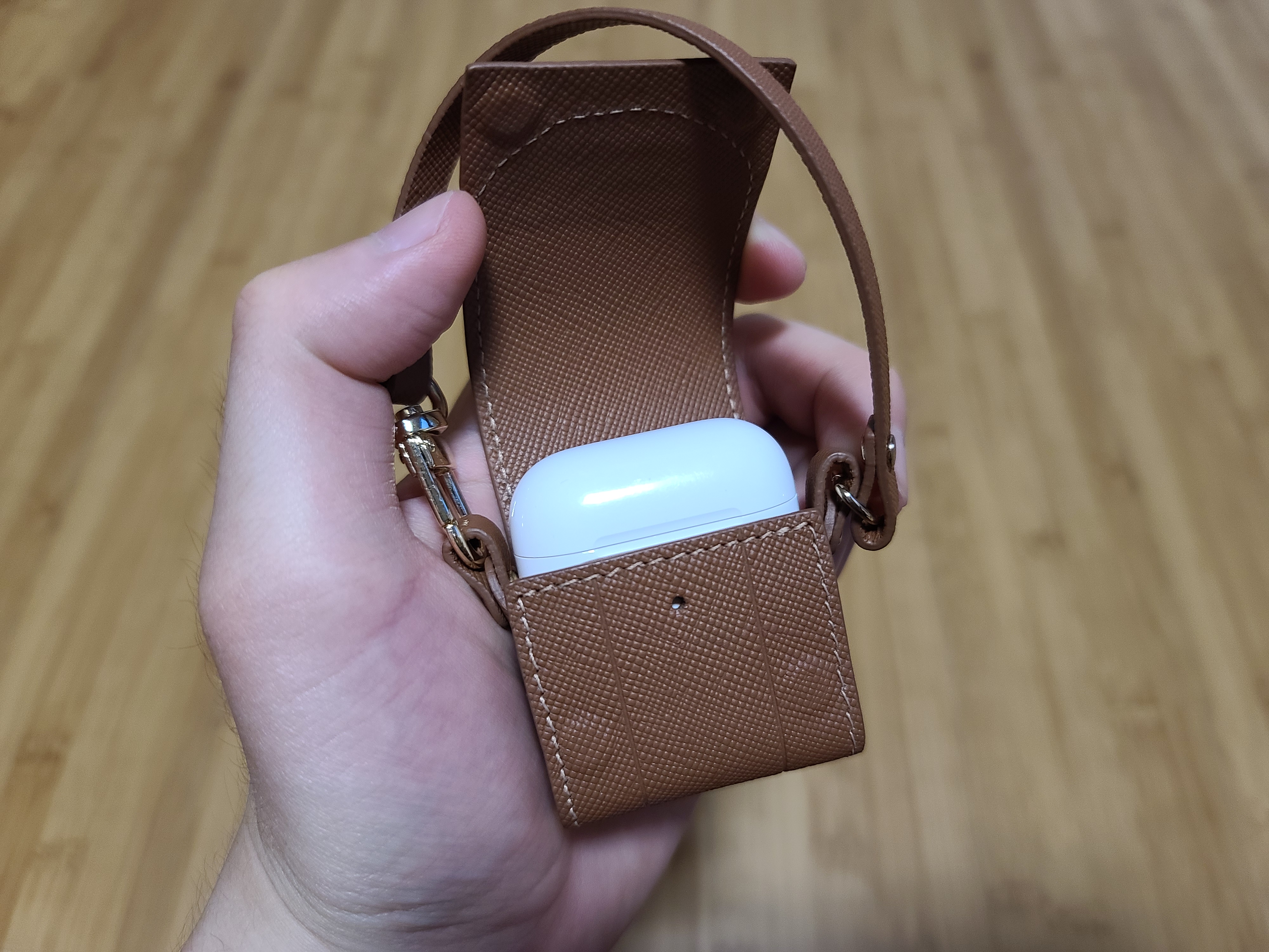 에어팟 2세대 가죽 케이스를 다른 가방과 결합한 모습입니다.