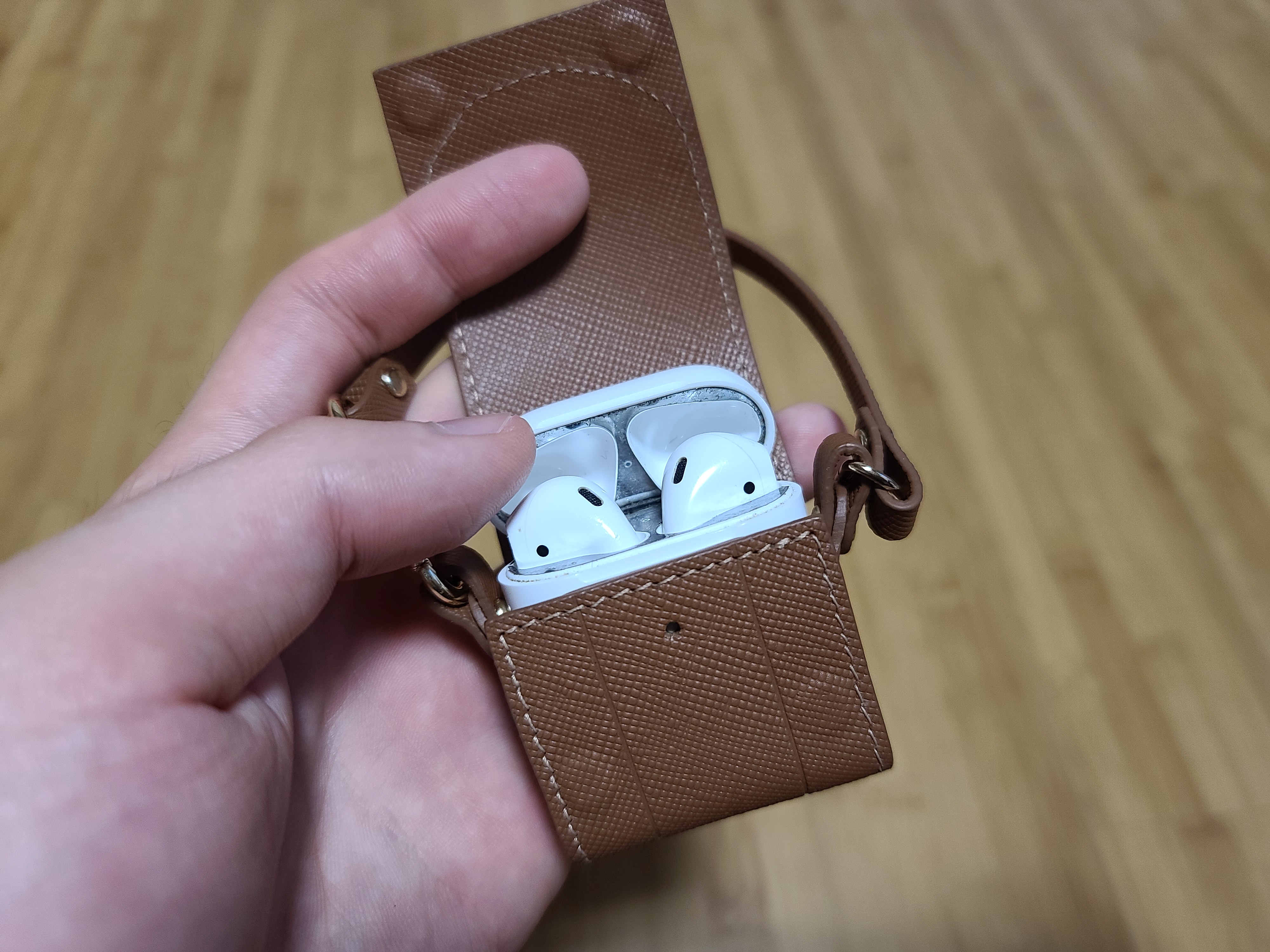 그럼 바로 한 번 에어팟 2세대를 이 가죽 케이스에 결합시켜보도록 하겠습니다.
