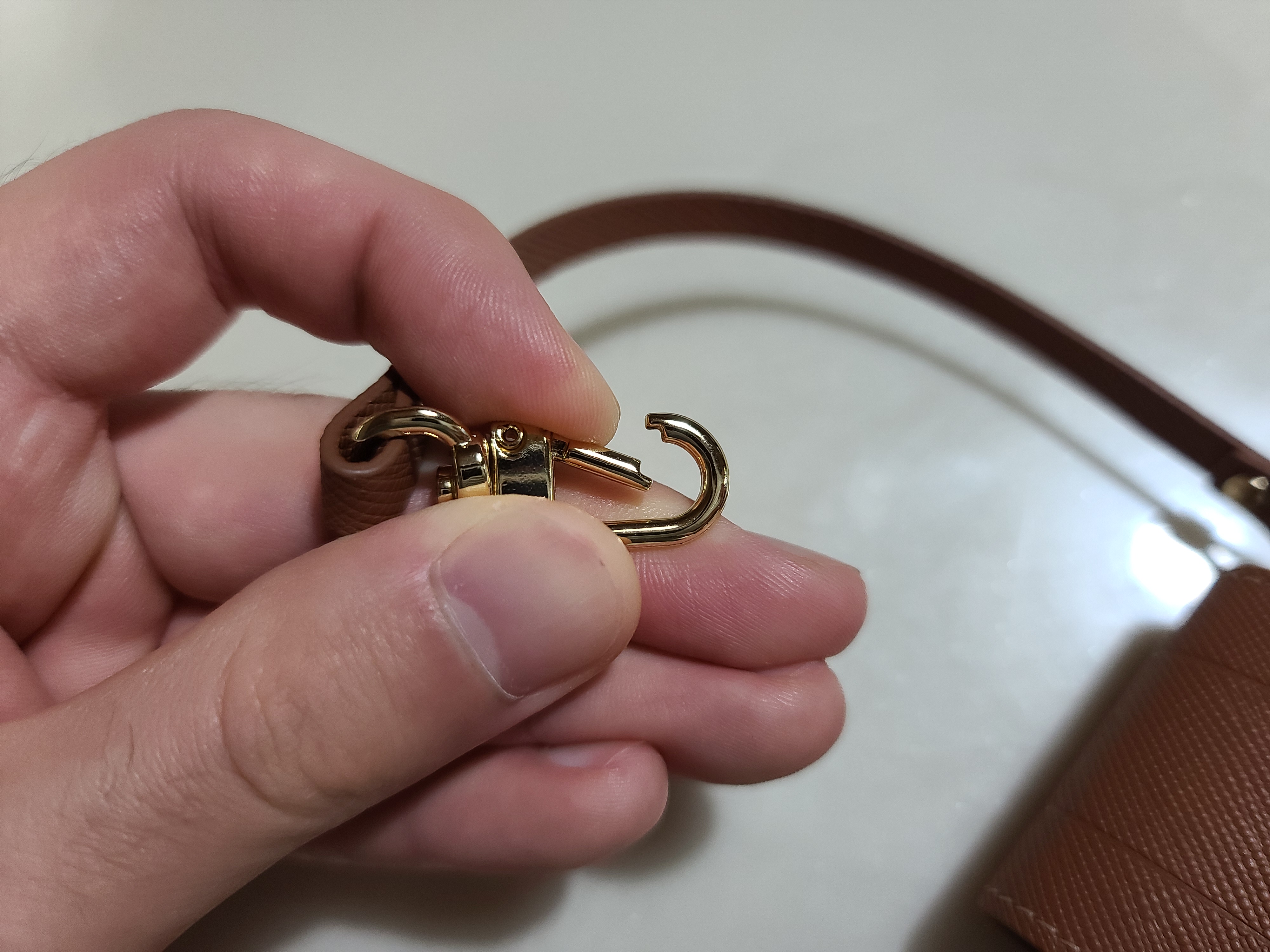 에어팟 2세대 가죽 케이스 릿에어에 달려 있는 가방끈을 이용하여 다른 물건에 결합시킬 수 있다는 것입니다.