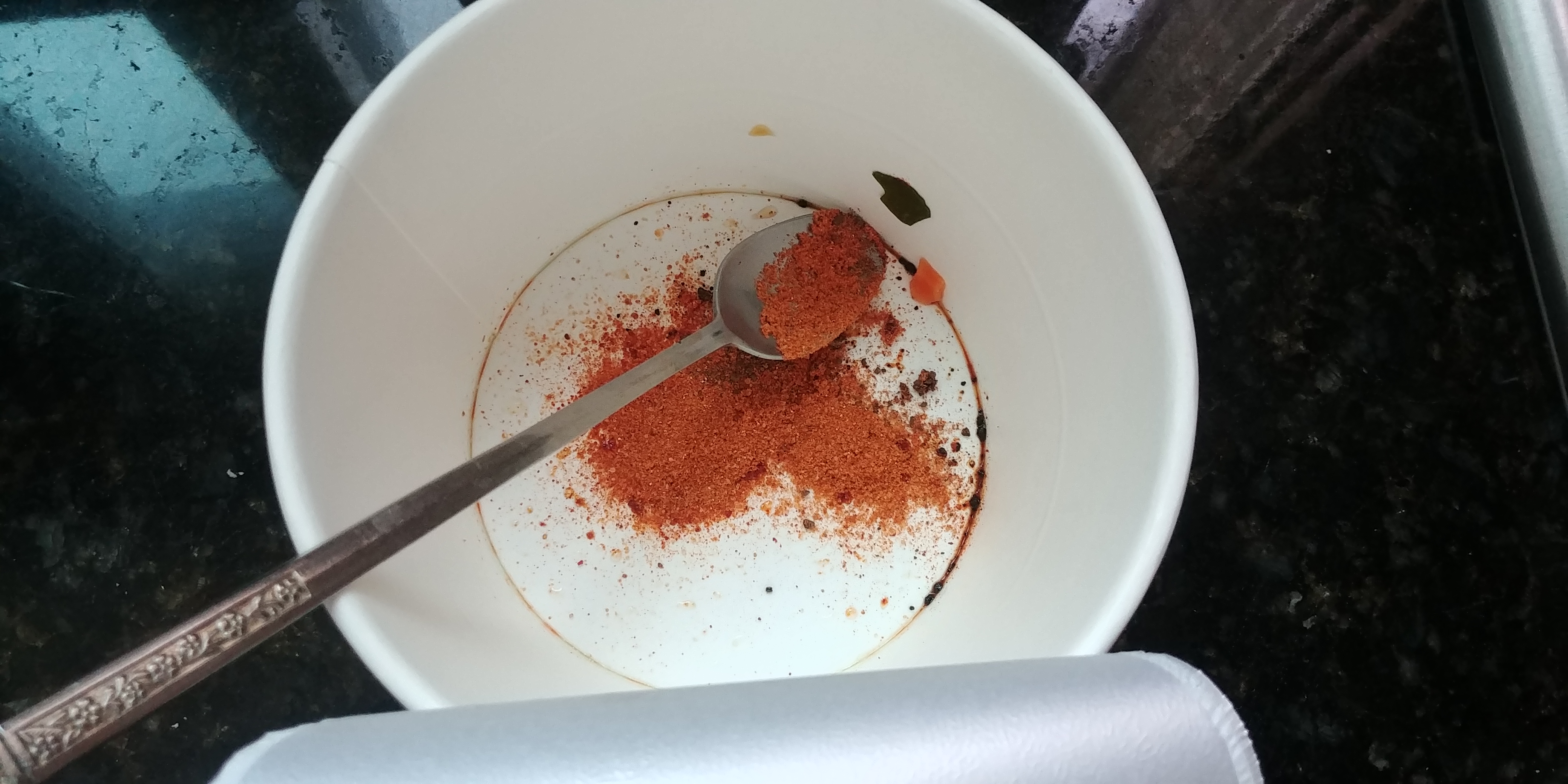 물을 버린 후에 불닭볶음면의 액상스프, 짜파게티의 올리브유와 분말스프를 넣어주시고, 앵그리 너구리 RTA의 분말스프를 반만 넣어줍니다. 국물이 없는 불파구리, 짜파구리이기 때문에 너구리의 스프를 다 넣어버리면 매우 짜기 때문에 주의하셔야 합니다.