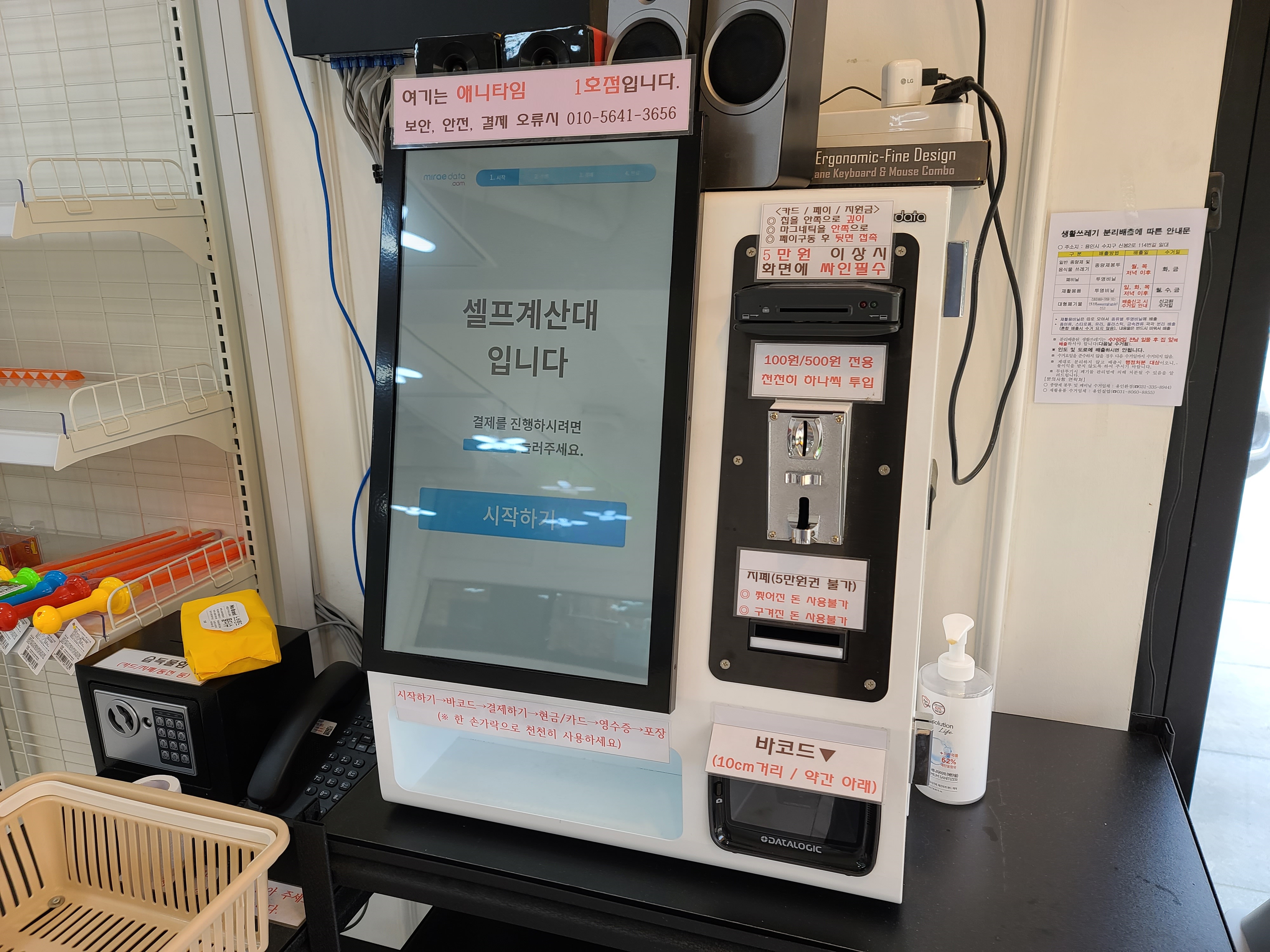 위와 같은 셀프계산대를 활용하여 인력 없이 무인점포로 운영되니,