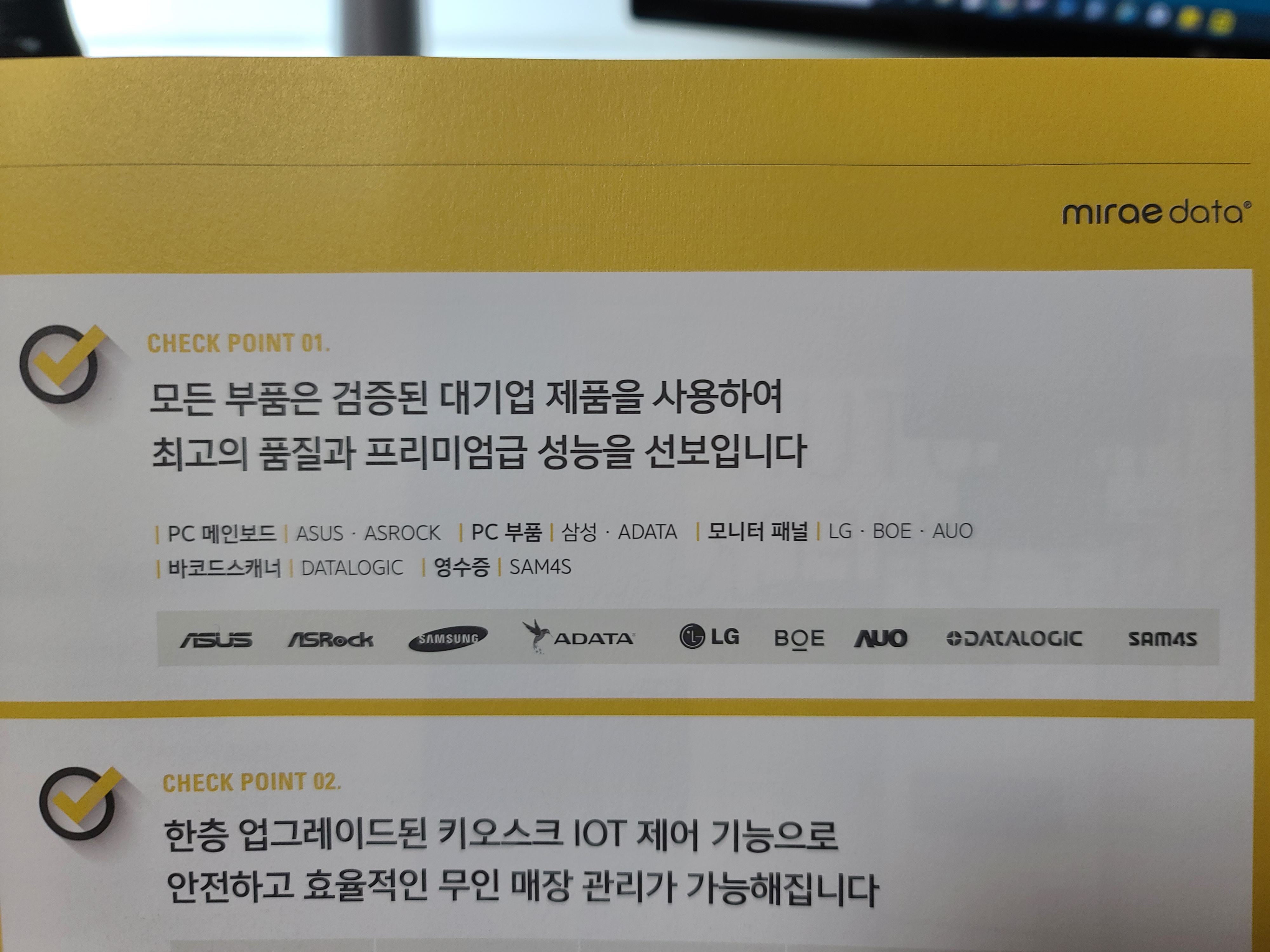 이렇게 무인 셀프계산대에 관련된 하드웨어와 소프트웨어를 동시에 개발하고 판매하는 업체는 국내에서 미래데이타가 유일하다고 하네요.