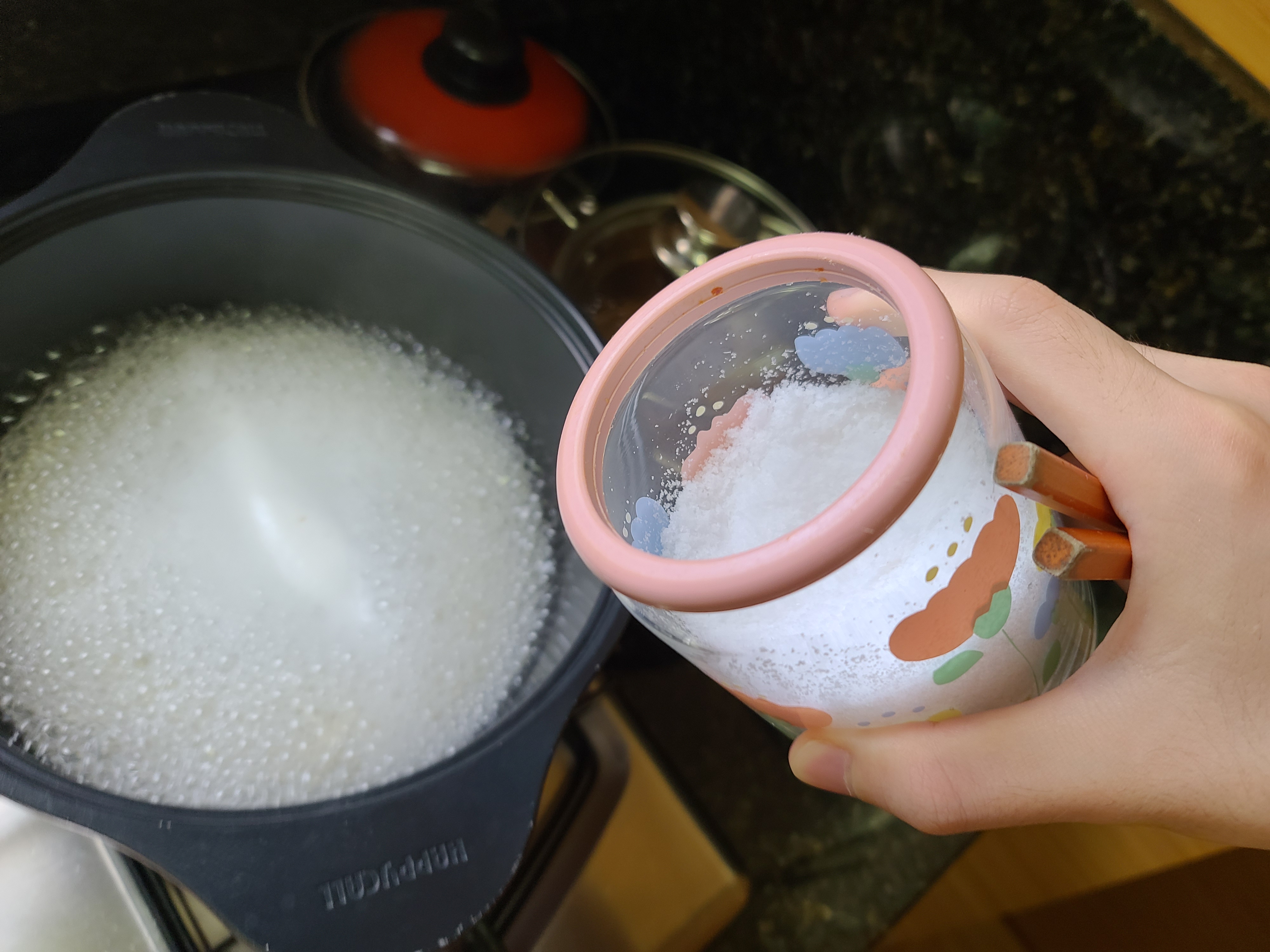 뭔가 많이 넣은 것 같지만, 금방 물이 다 날아가버리기 때문에 괜찮습니다.