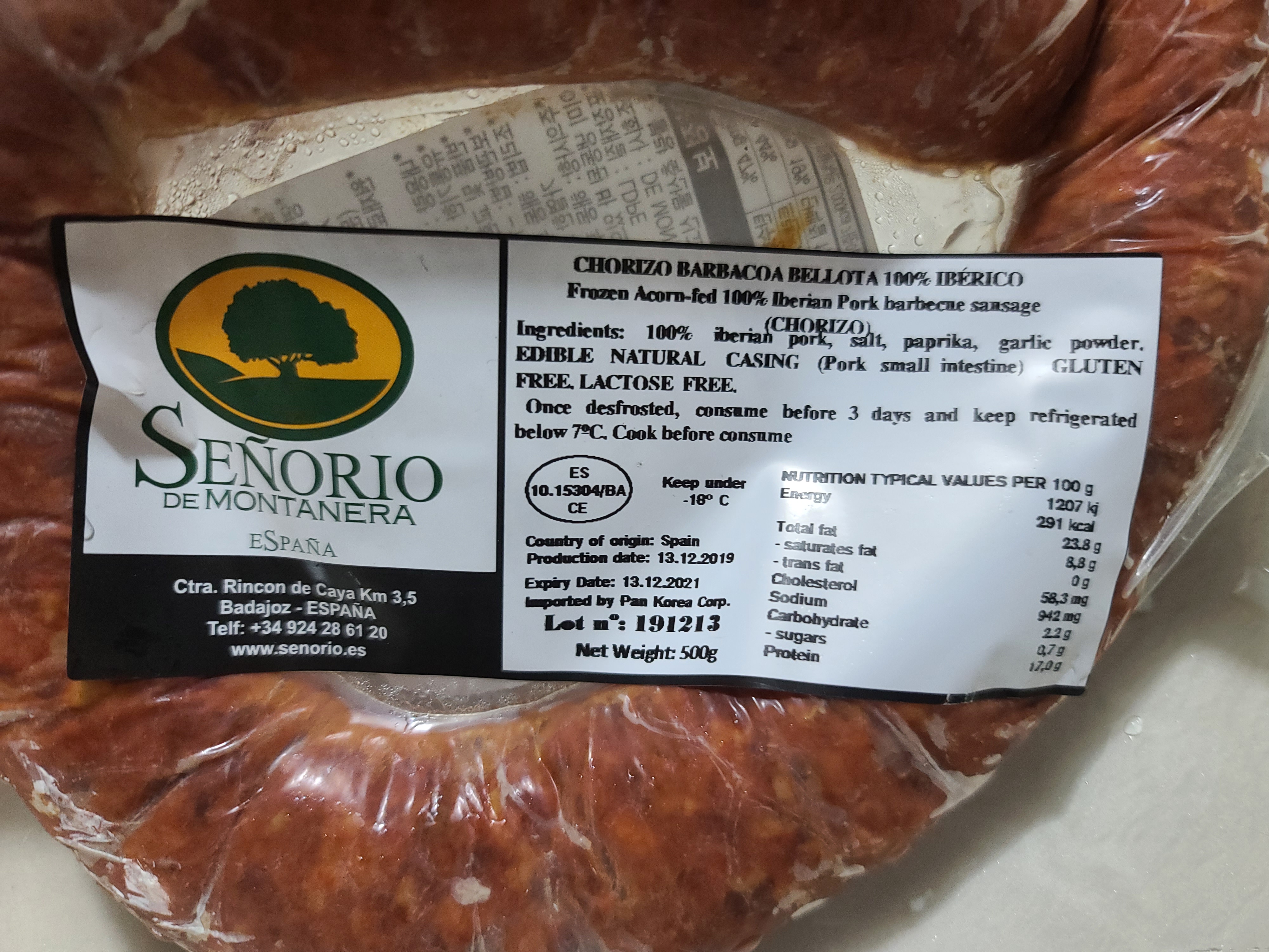 오늘 초리조 파스타에 사용할 초리조는 가문의 레시피에서 제공해주신 이베리코 베요타 초리조를 사용하도록 하겠습니다.