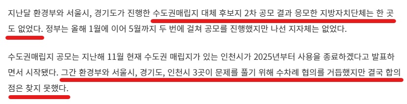 대체 매립지를 찾는 것이 너무나도 힘들기 때문입니다.