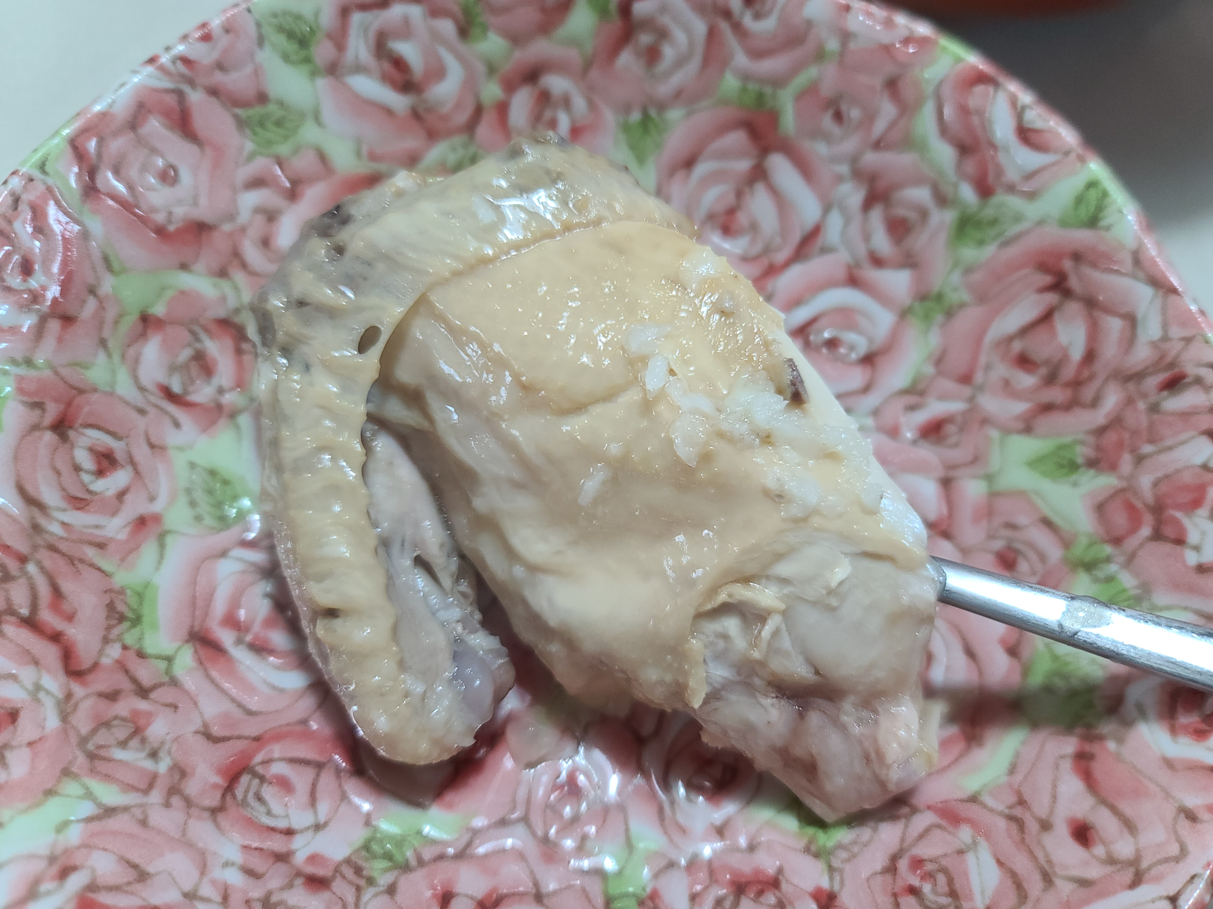 쫄깃한 식감이 살짝 덜하고, 수삼 향이 살짝 많이 났습니다.