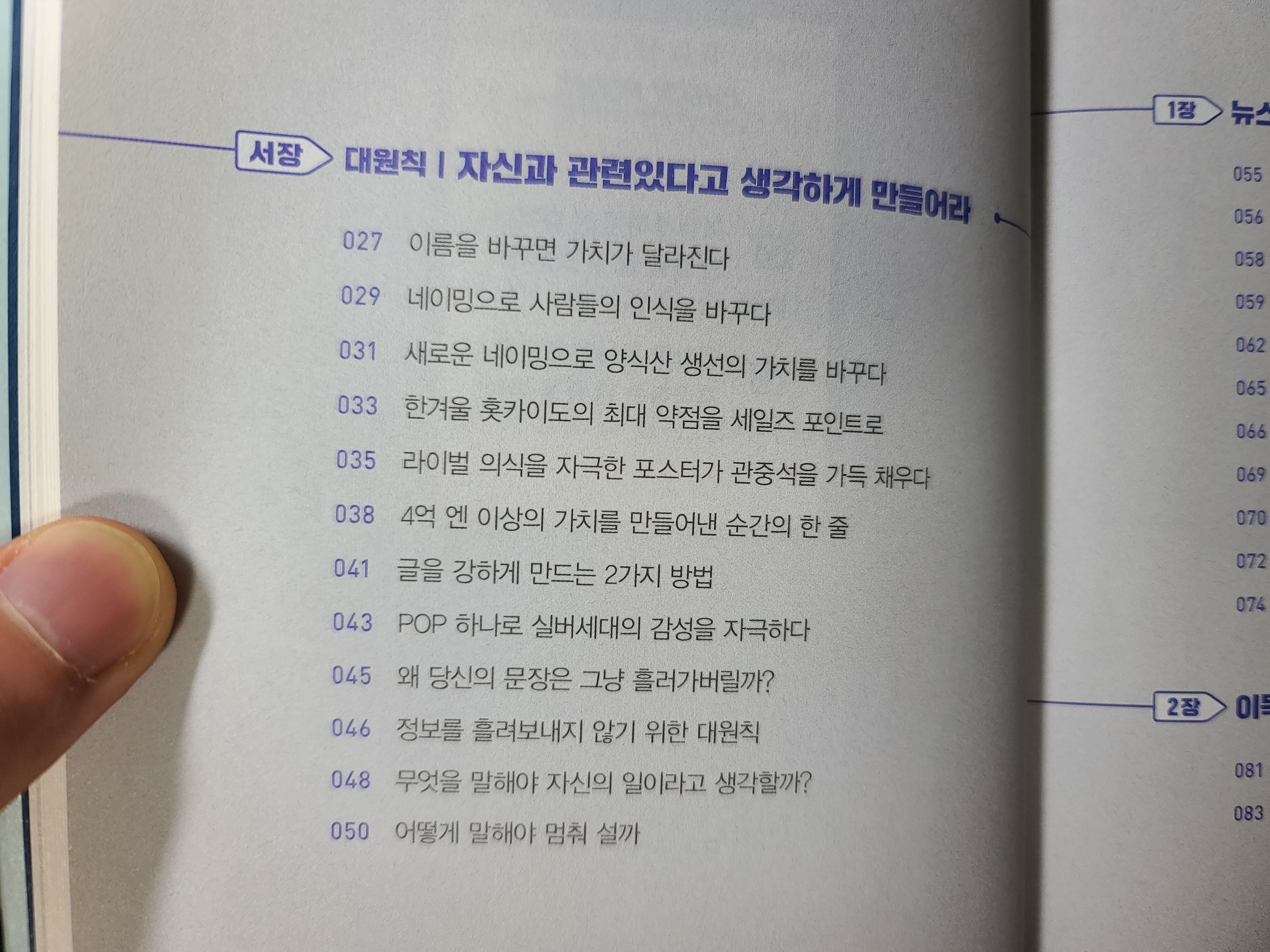 이 책은 카피라이팅에 관련된 책이지만, 꼭 카피라이팅이 아니어도 인생을 살아가면서 도움이 될만한 글쓰기 관련 스킬들을 이해하기 쉽게 다루고 있다는 점에서 높은 점수를 주고 싶다.