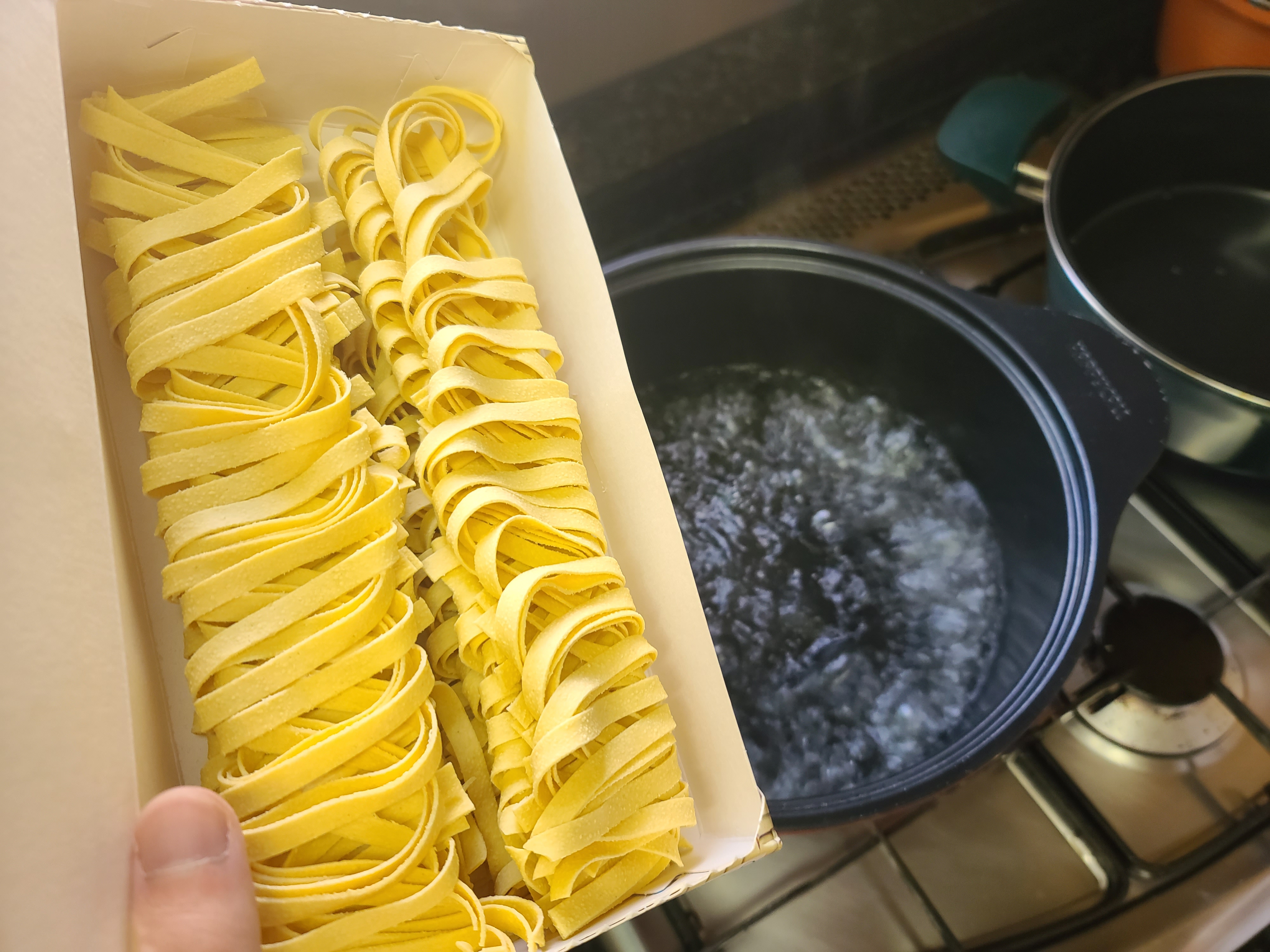 이렇게 과감하게 삶아진 노브랜드 에그파스타(딸리아뗄레)를 넣어주시면 됩니다.
