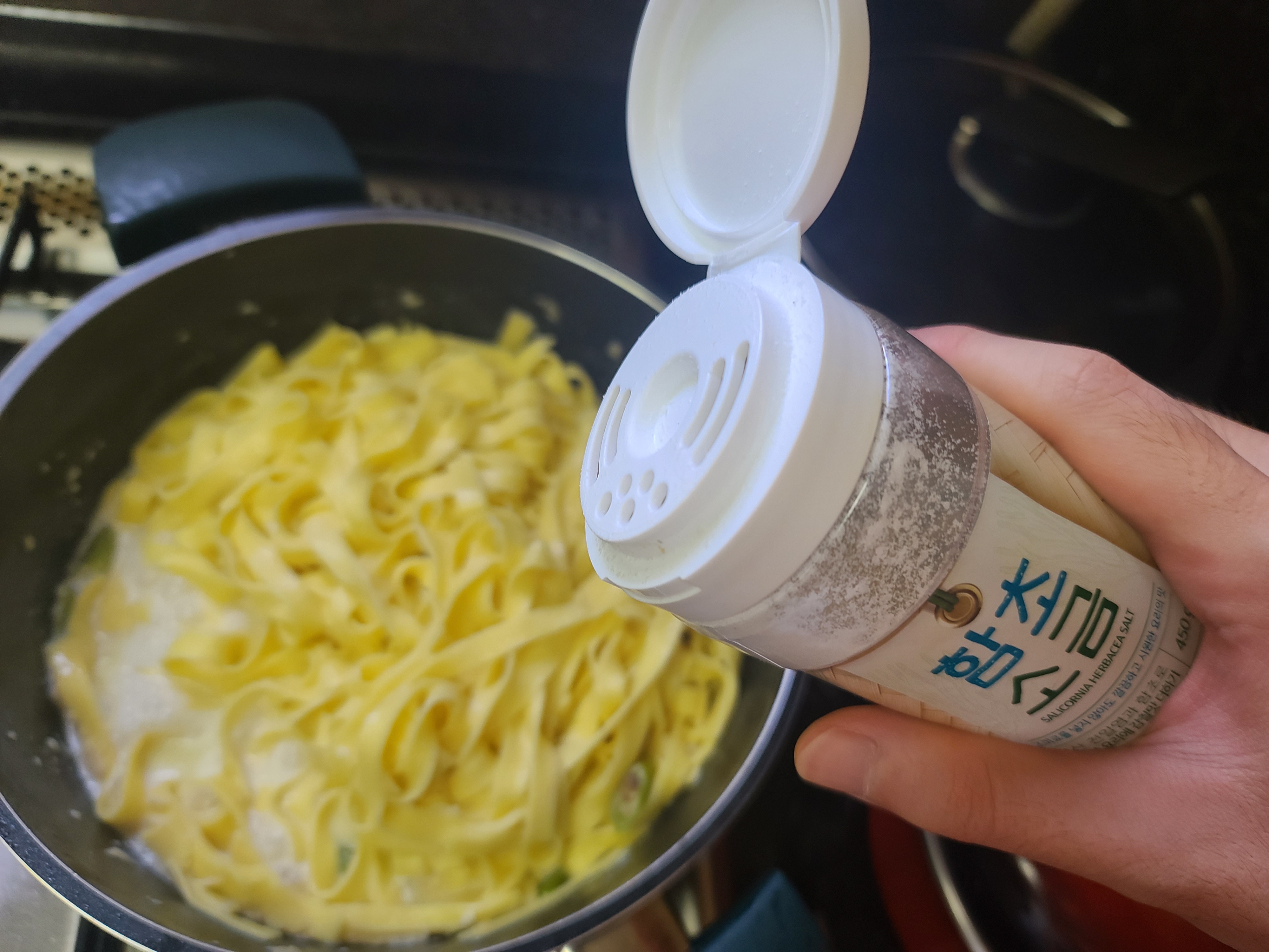 지금까지 면수에 넣은 소금을 제외하고는 소금을 전혀 넣지 않았기 때문에,