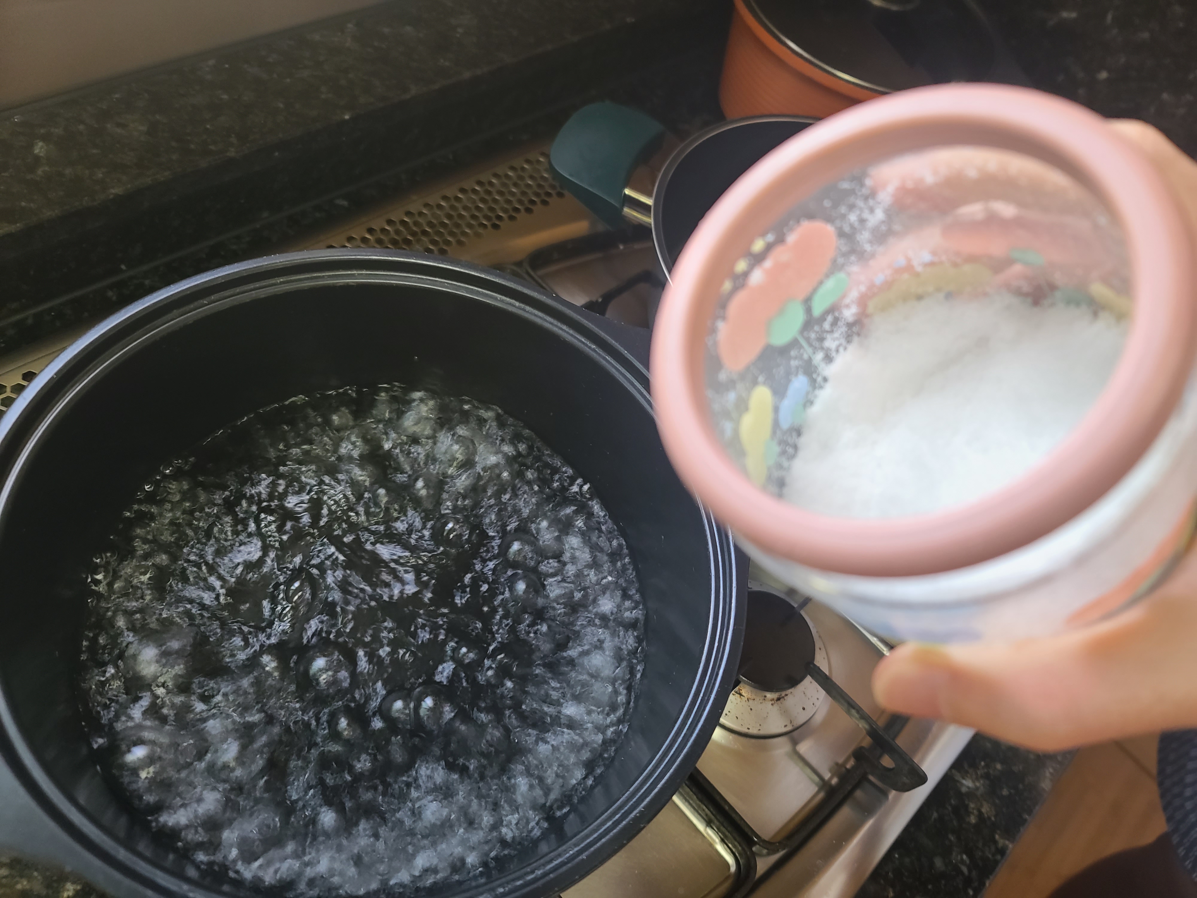 가장 먼저 끓는 물에 소금을 넣어준 후,