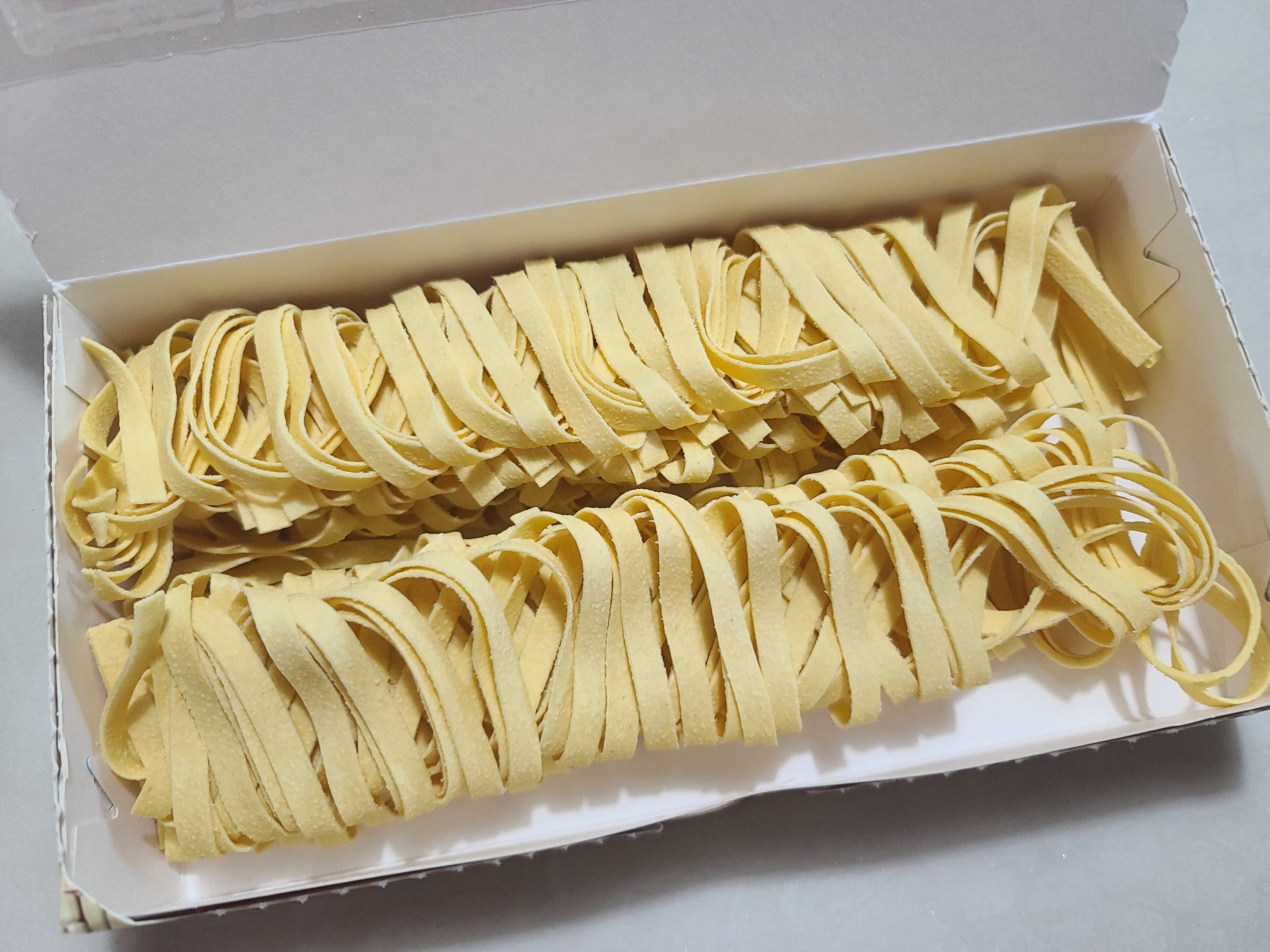 그래서 노브랜드 에그파스타(딸리아뗄레)를 보면, 면 색깔이 노란색이라는 것을 알 수 있다.