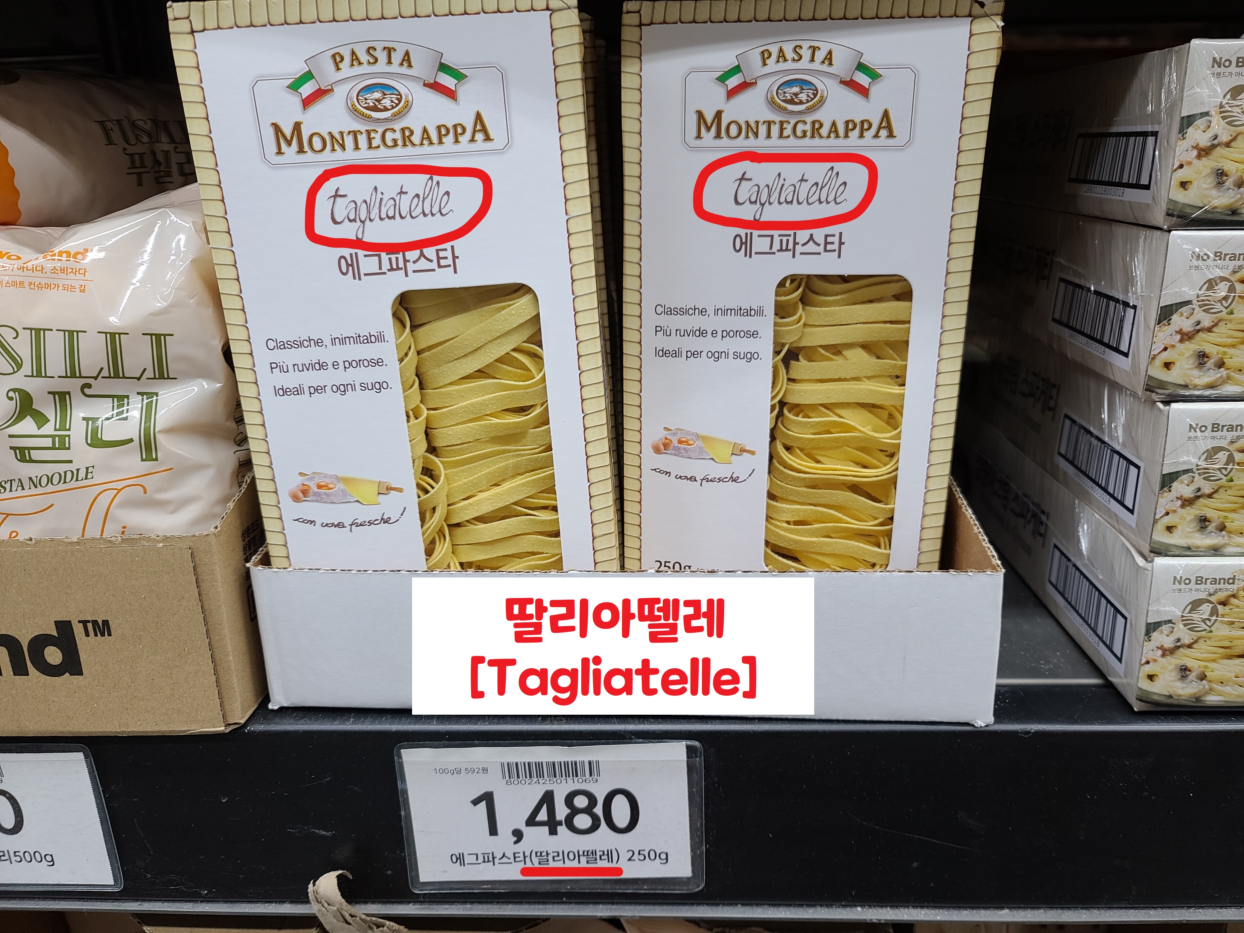 노브랜드 에그파스타(딸리아뗄레)의 가격은 250g에 1,480원입니다.