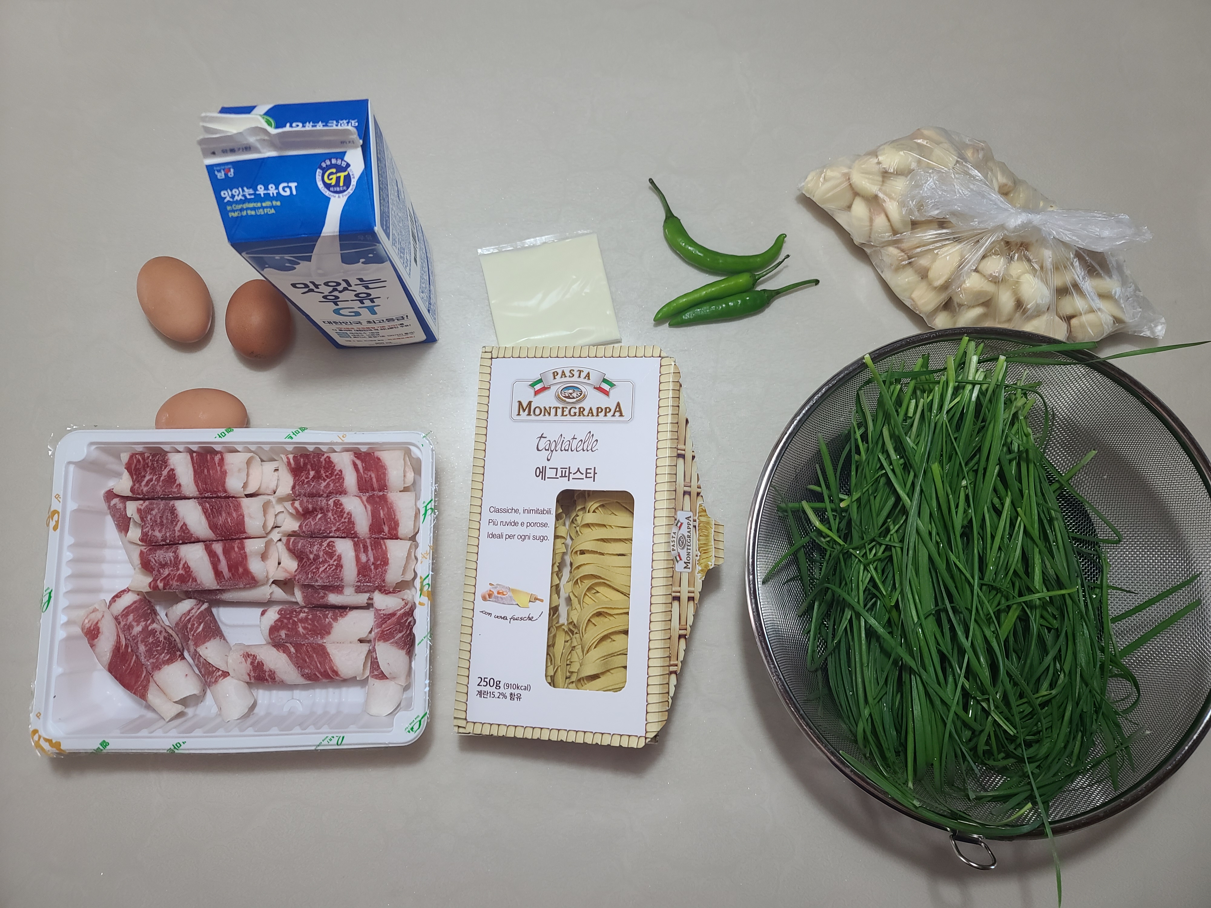 솔직히 말씀드리면 그냥 노브랜드 에그파스타(딸리아뗄레), 차돌박이, 그리고 소금 후추만 있어도 충분합니다.