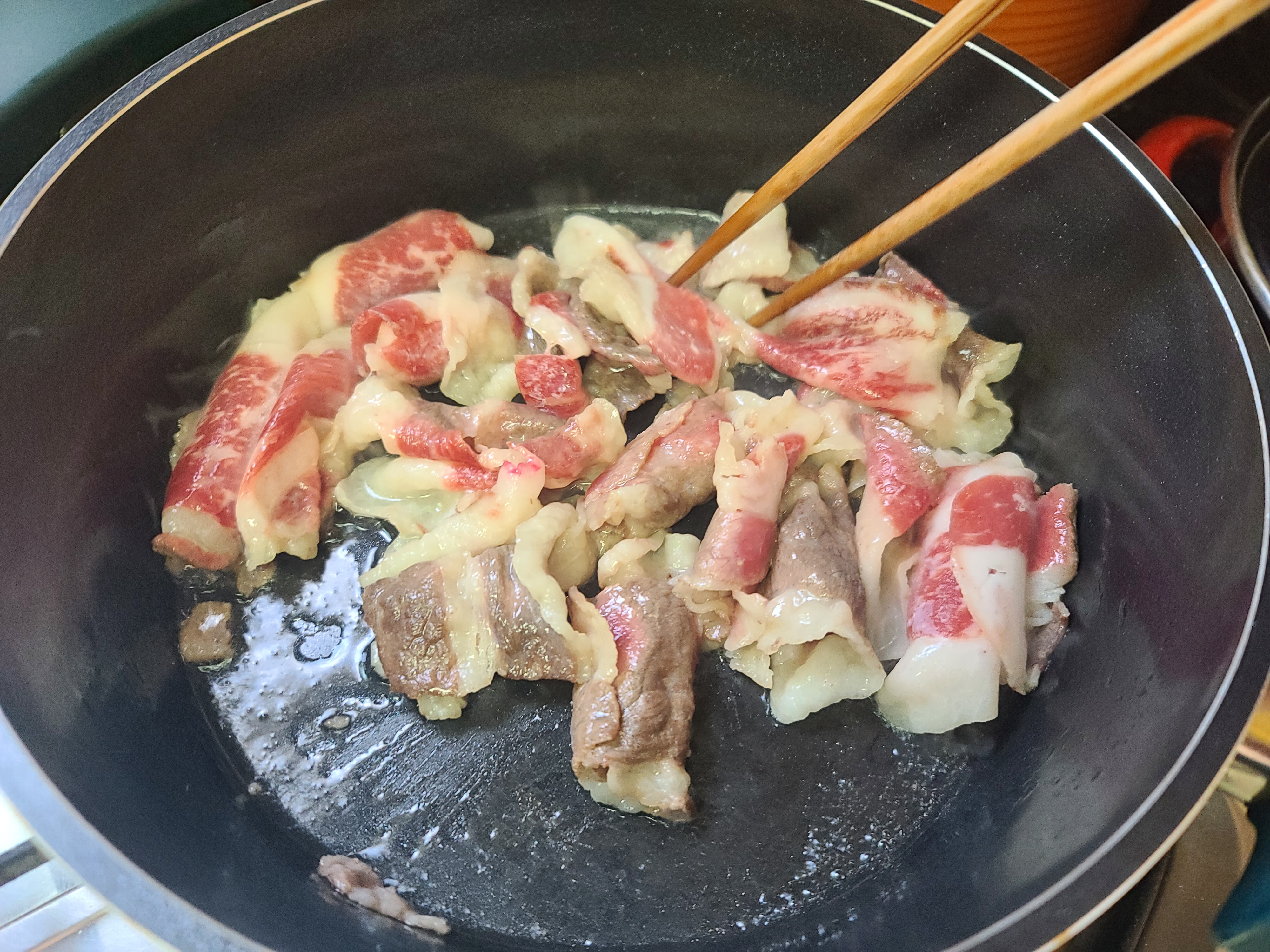 어쨌든 차돌박이가 맛있게 익었다면 차돌박이는 그릇에 따로 담아주신 후,