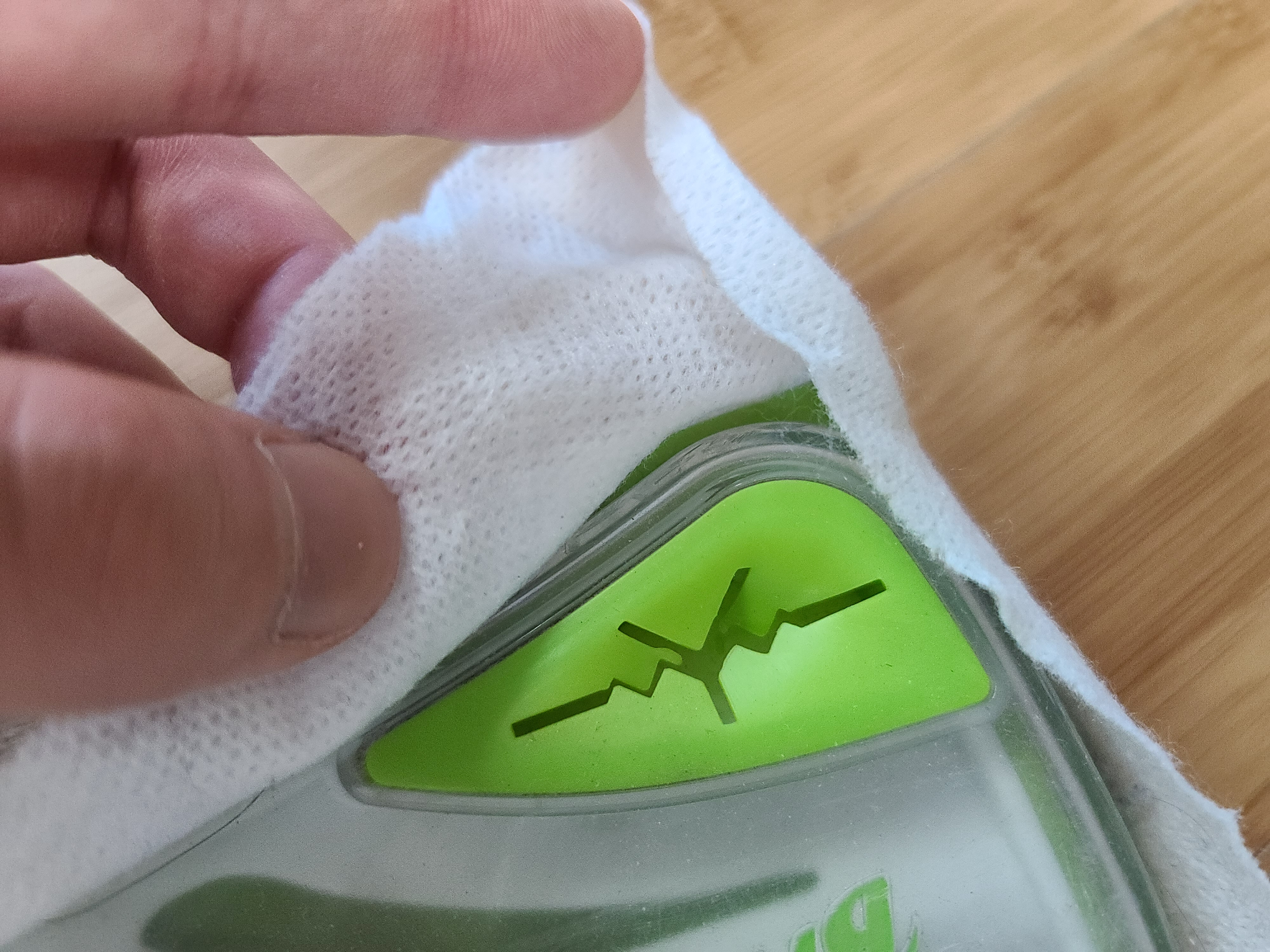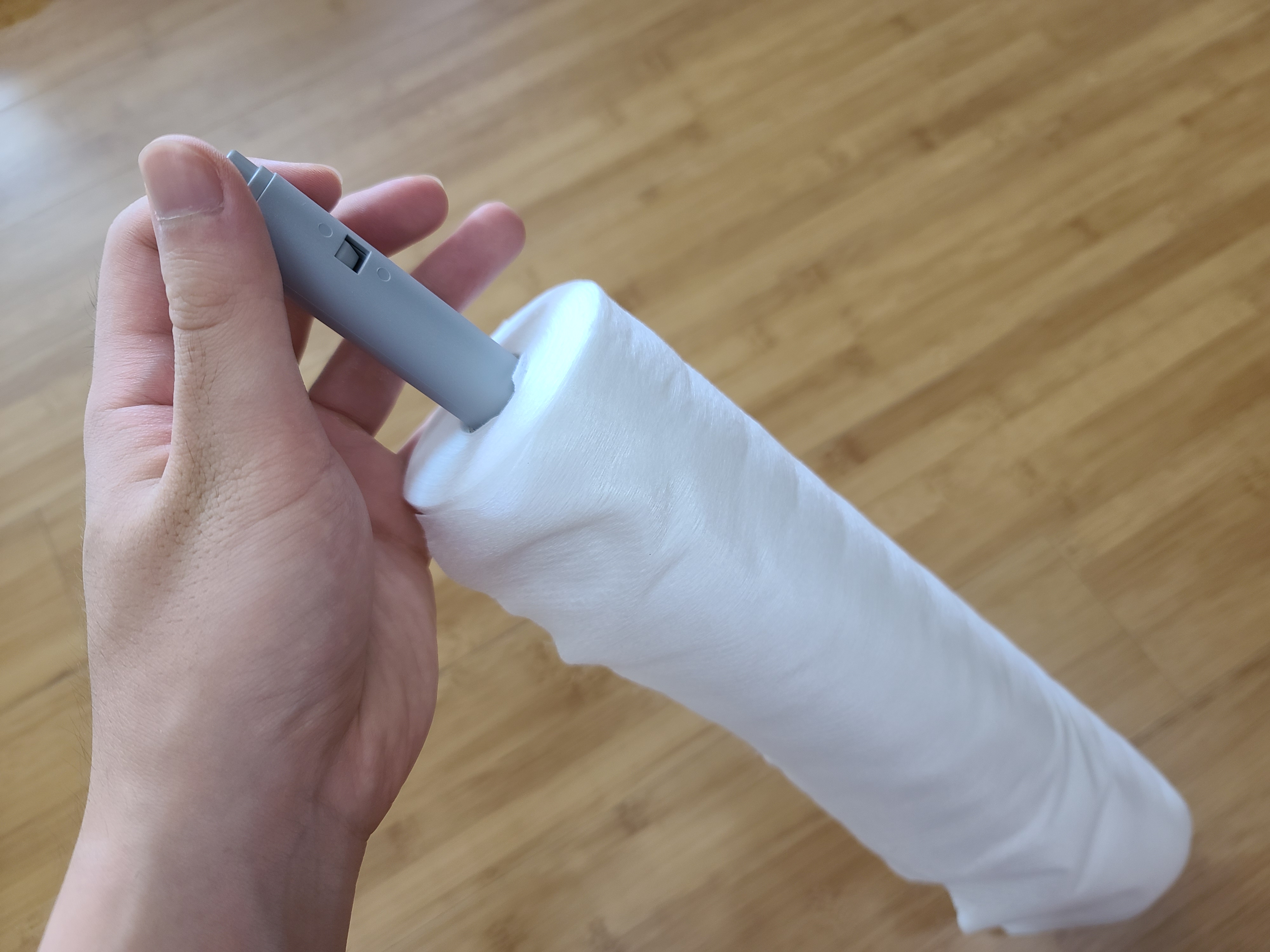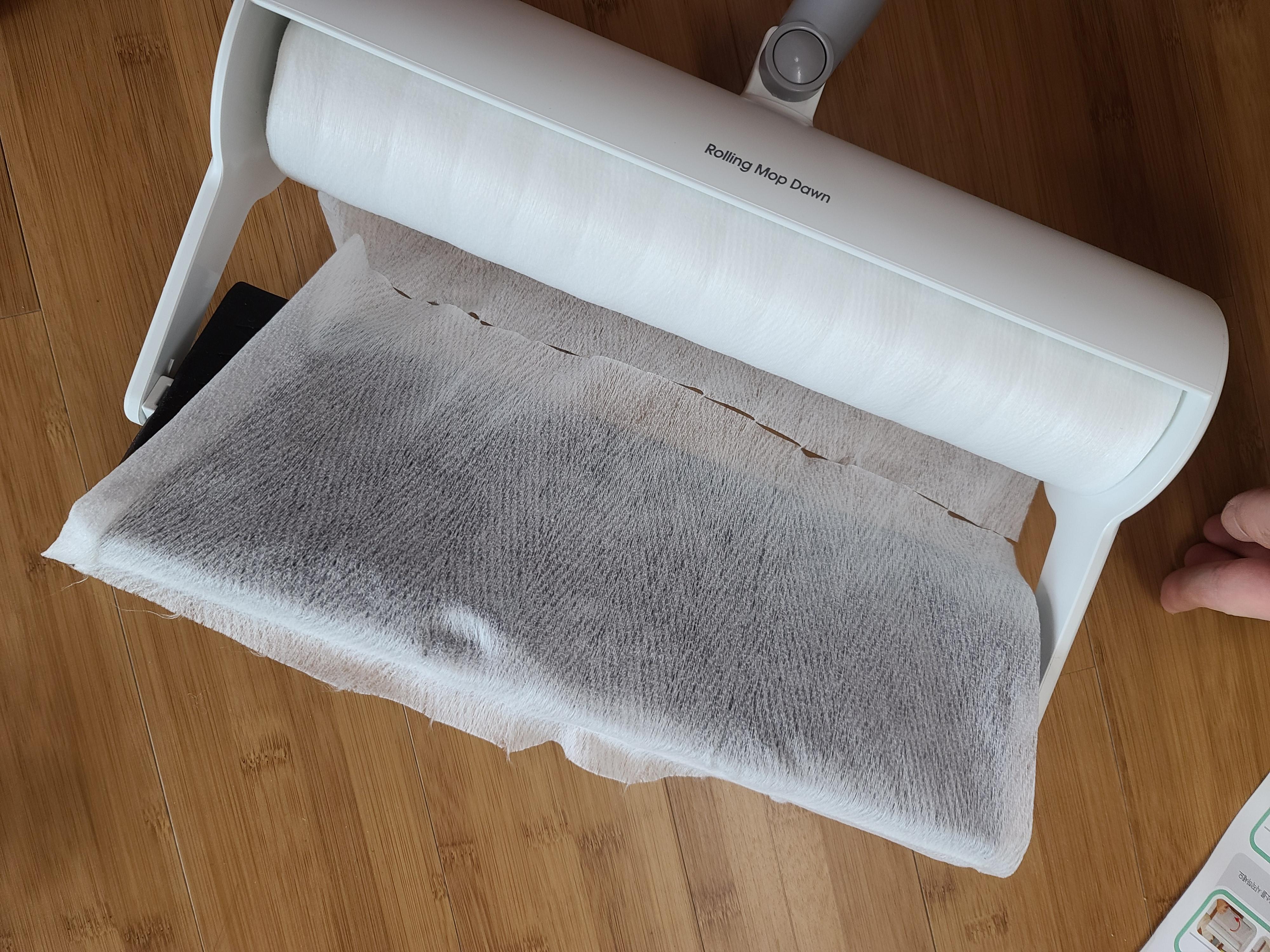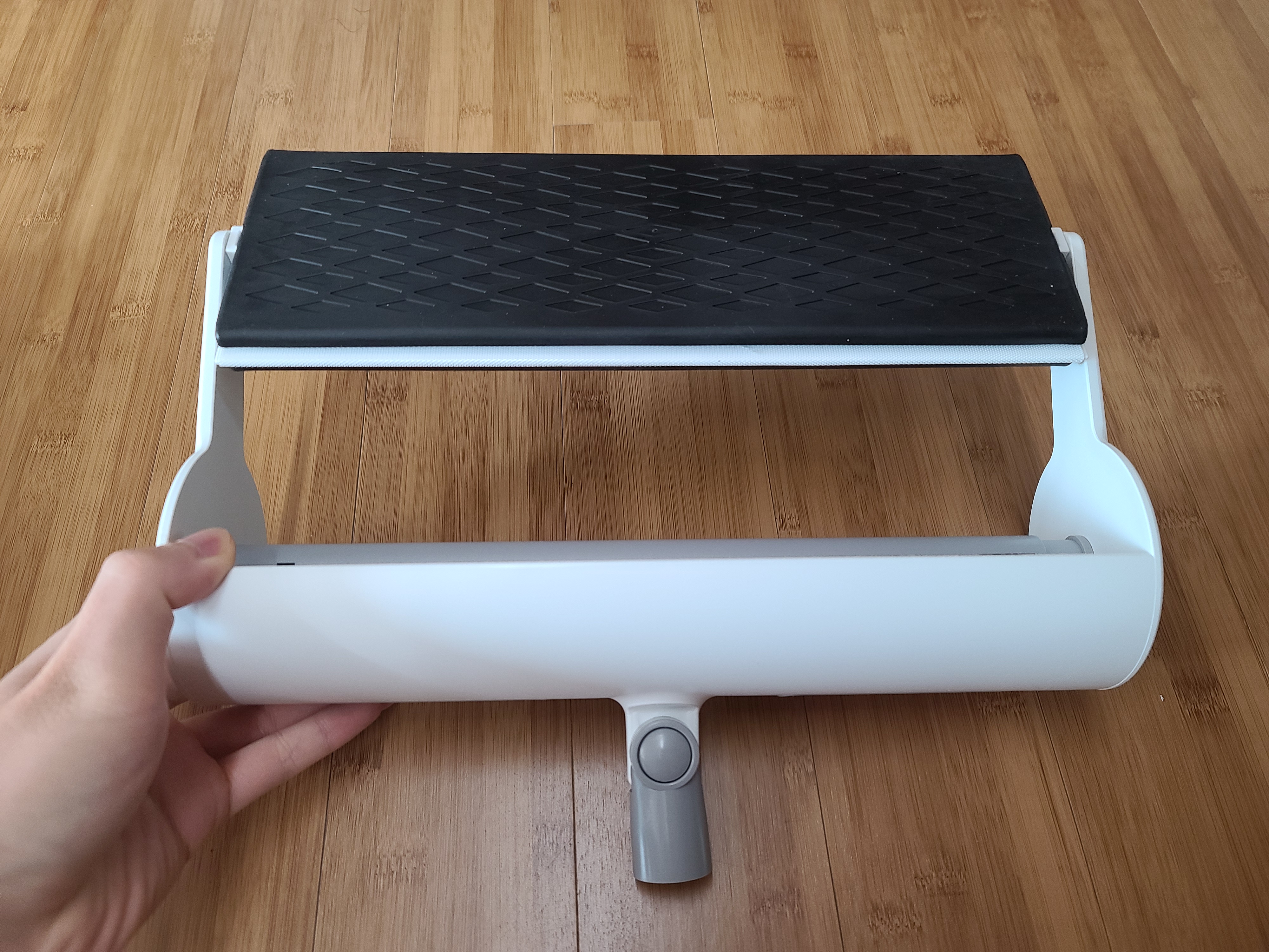 다음으로는 정전기 청소포를 롤링 맙던 헤드에 있는 흰색 벨크로에 아래 사진과 같이 붙여주시면 끝입니다.