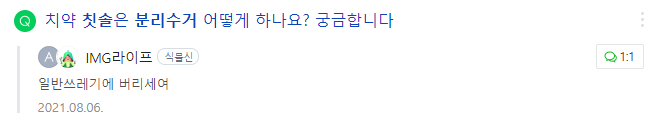 인터넷에 칫솔 분리수거에 관해 검색을 하면, 다음과 같은 글들이 많이 나오곤 합니다.