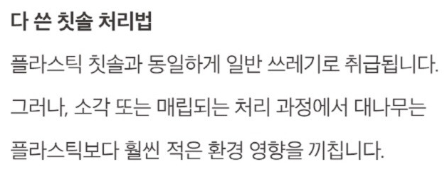 소각을 할 때 발생하는 유해물질이 플라스틱 칫솔에 비해 월등히 적다고 합니다.