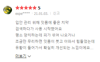 구내염이 자주 발생하거나 잇몸에서 피가 자주 나는 분들이 사용하면 좋을 것 같다는 생각이 듭니다.