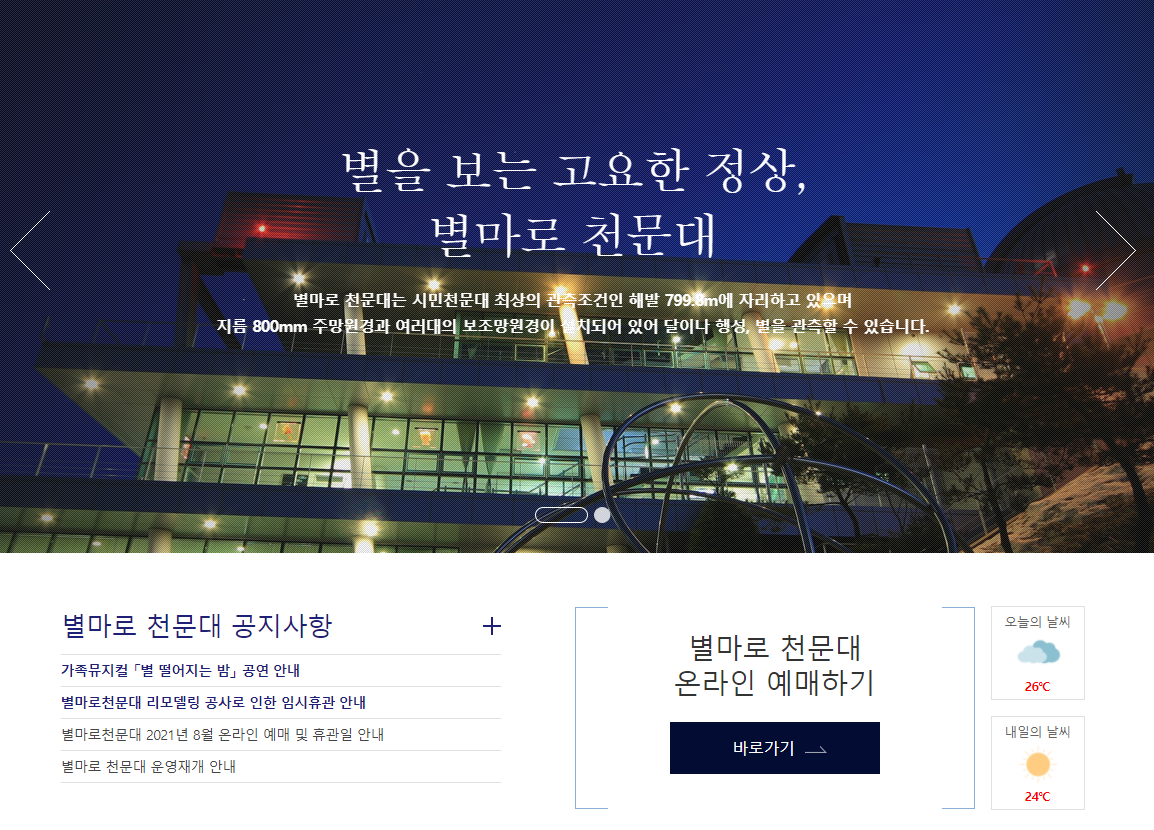 저는 별마로 천문대 홈페이지에서 약 3일 전에 예약을 했습니다.