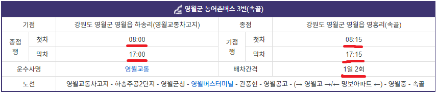 즉, 하루에 2번 밖에 운행을 안 하는 버스라는 것입니다.