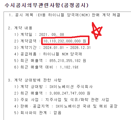 게다가 최근에 에코프로비엠이 SK이노베이션과 10조원의 양극재 판매 계약까지 했기 때문에..