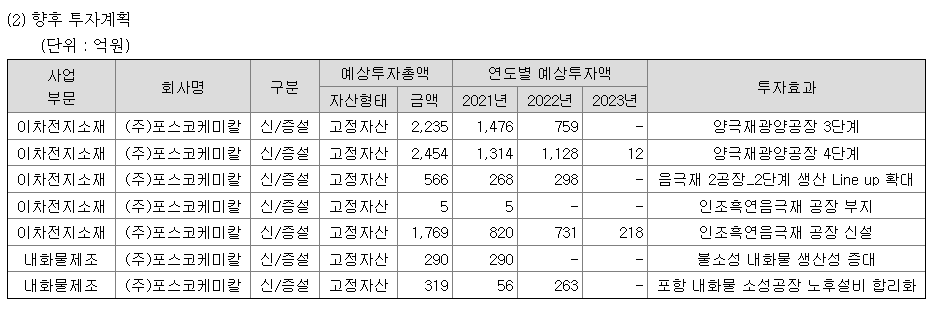 이뿐만 아니라 포스코케미칼은 이차전지 소재 생산 능력을 키우기 국내 및 해외 투자 비중을 계속 확대해 나가고 있습니다.