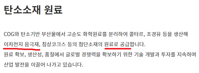 추가로 포스코케미칼은 탄소소재 제품뿐만 아니라 원료도 직접 생산합니다.