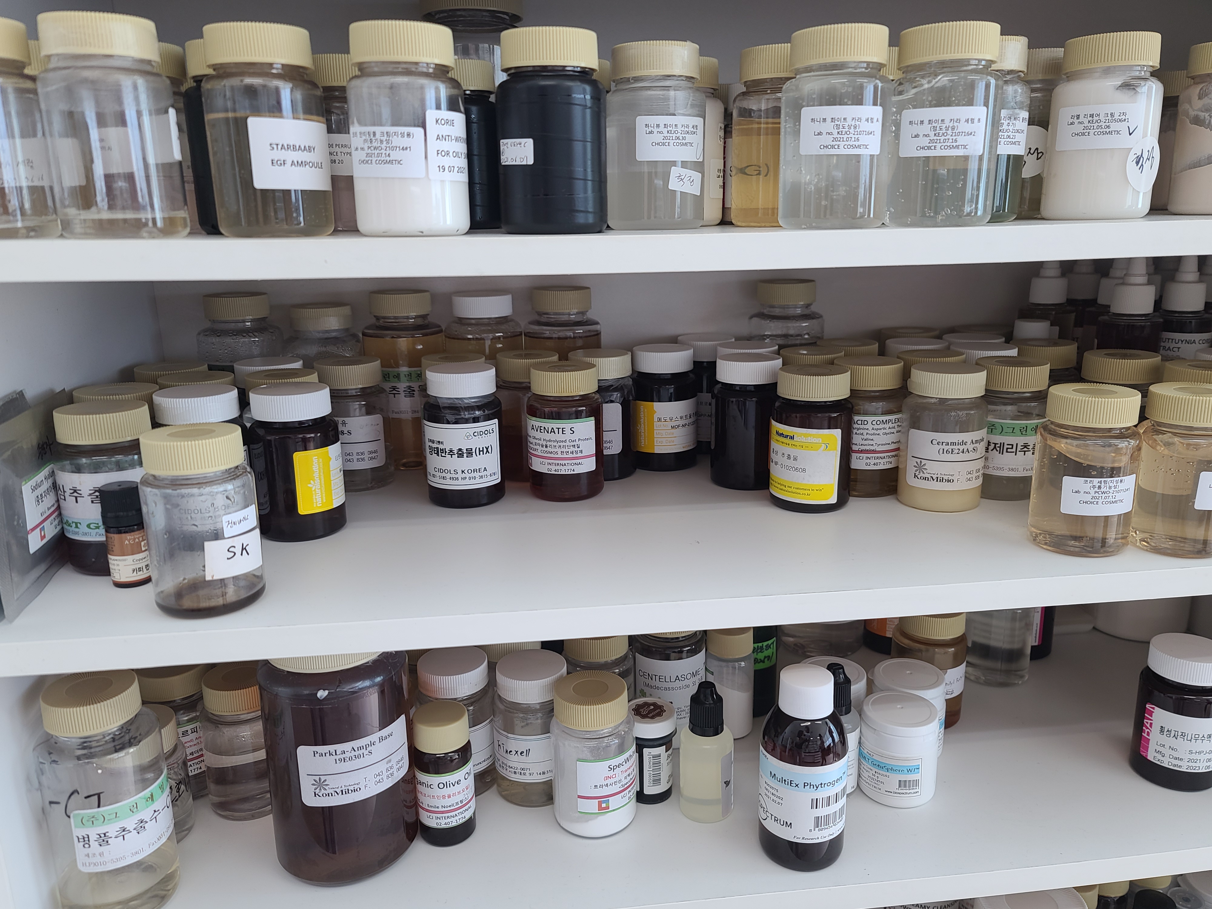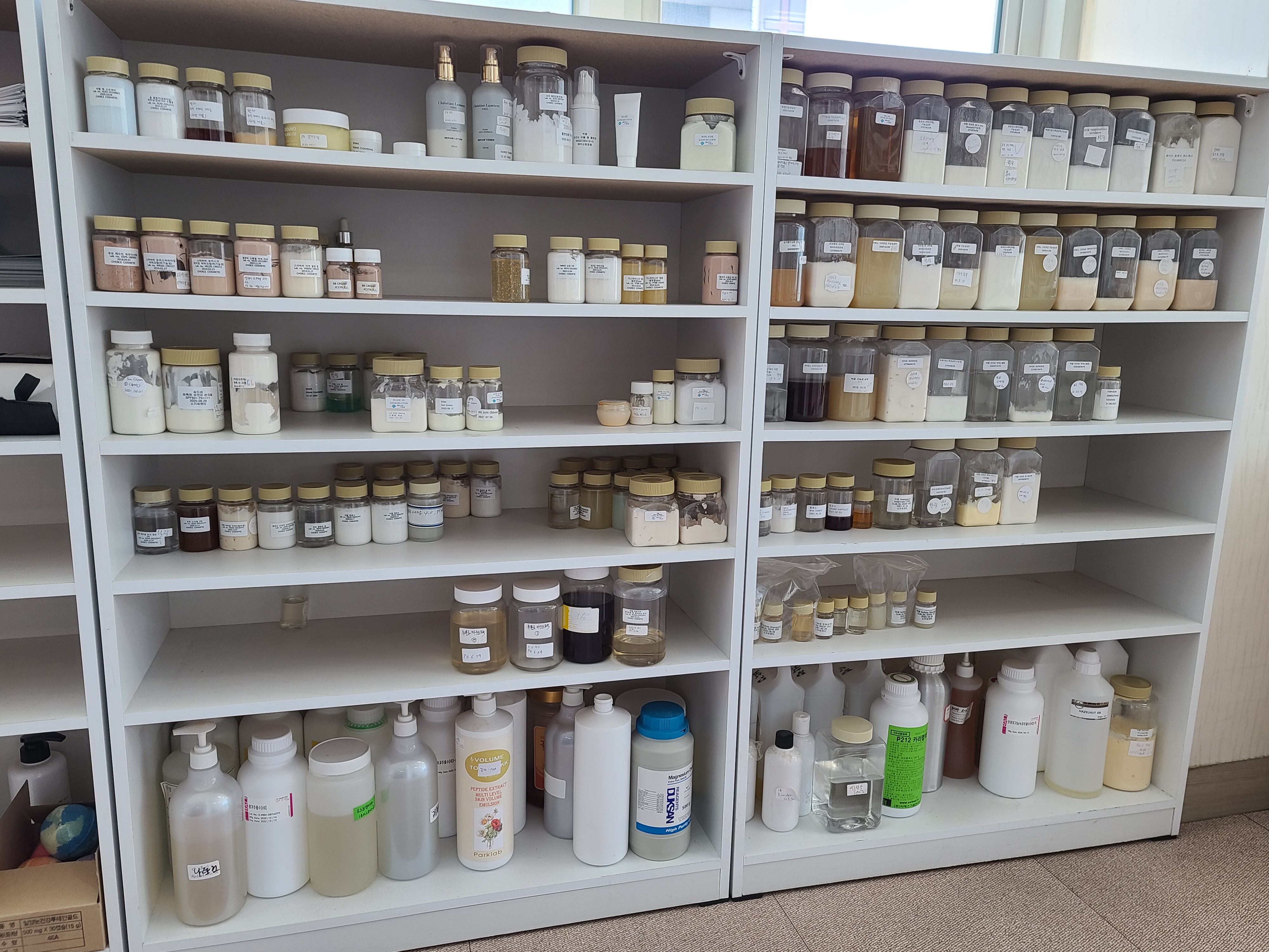 안쪽으로 들어가니 화장품을 개발하는데 들어가는 여러 가지 물질(?)들이 많이 놓여있었습니다.
