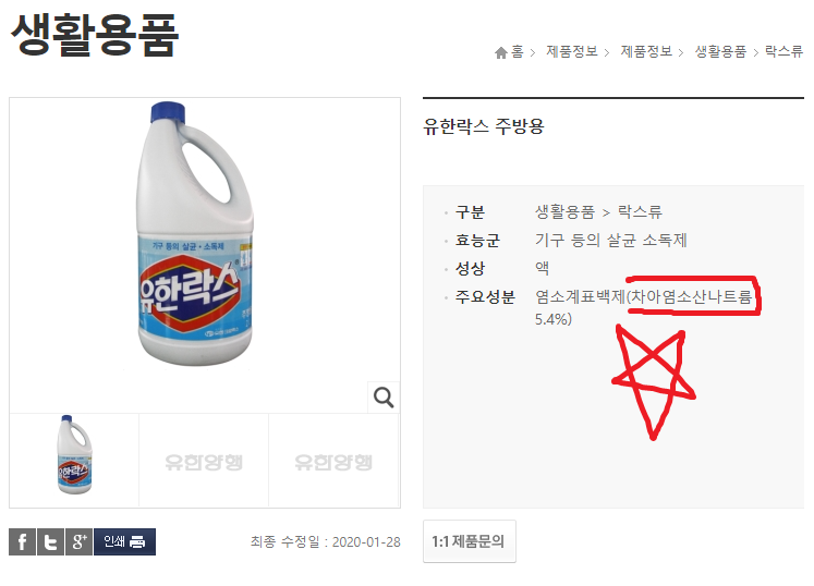 보통 화장실 청소를 할 때 위와 같은 락스를 많이 사용하곤 합니다.