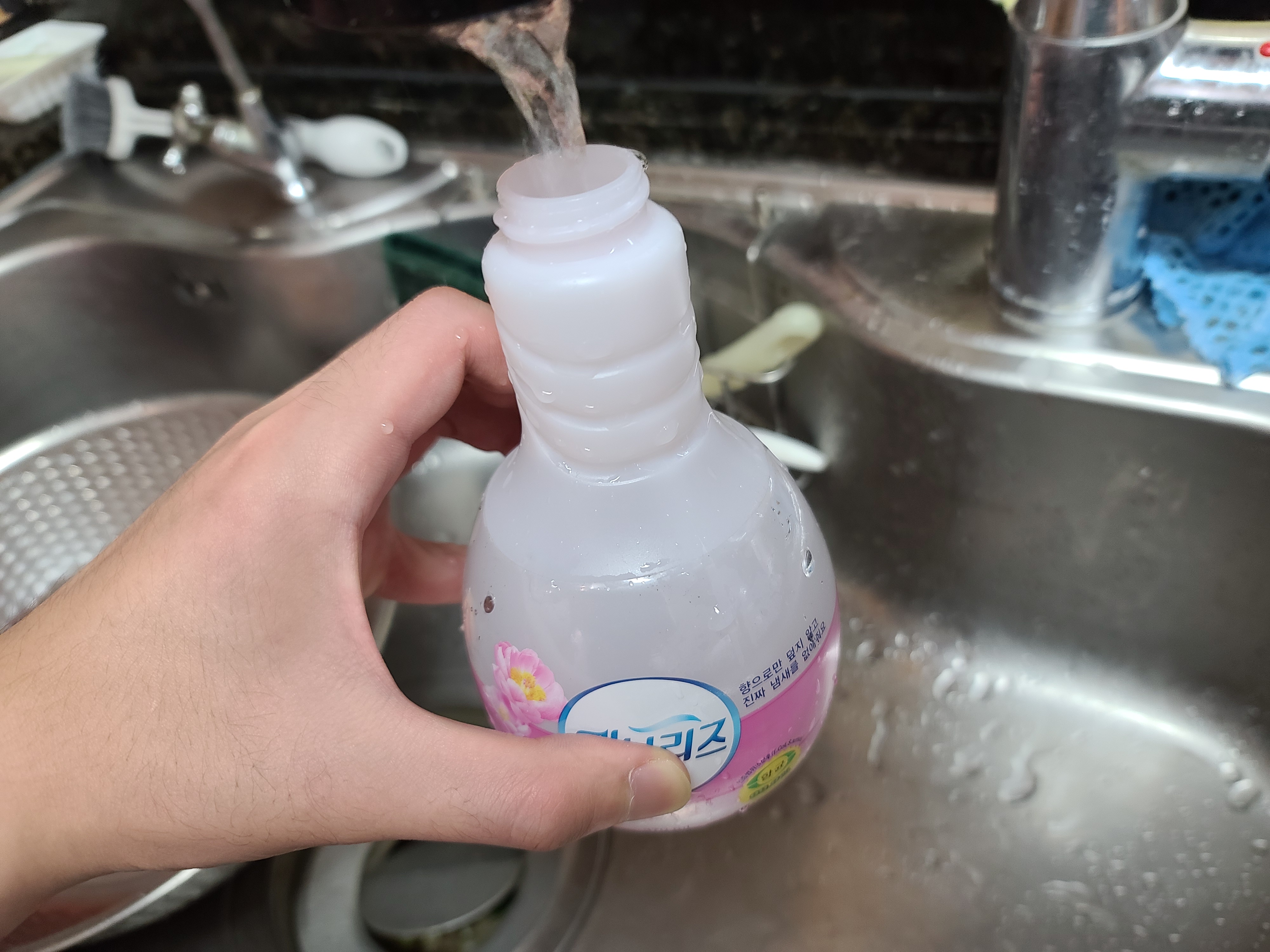 절수기를 사용하여 설거지를 하는 영상입니다.
