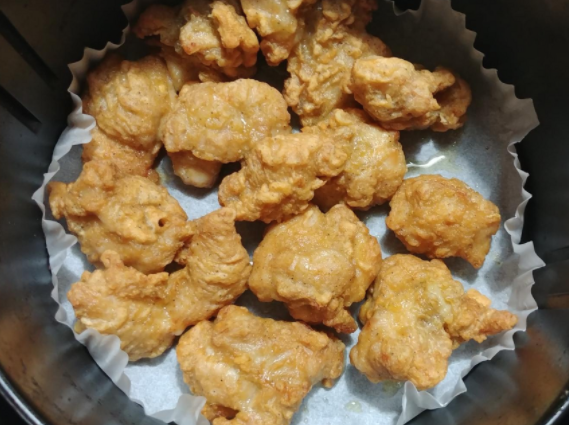 "후추 맛이 많이 느껴지는 기름기 많은 순살치킨"