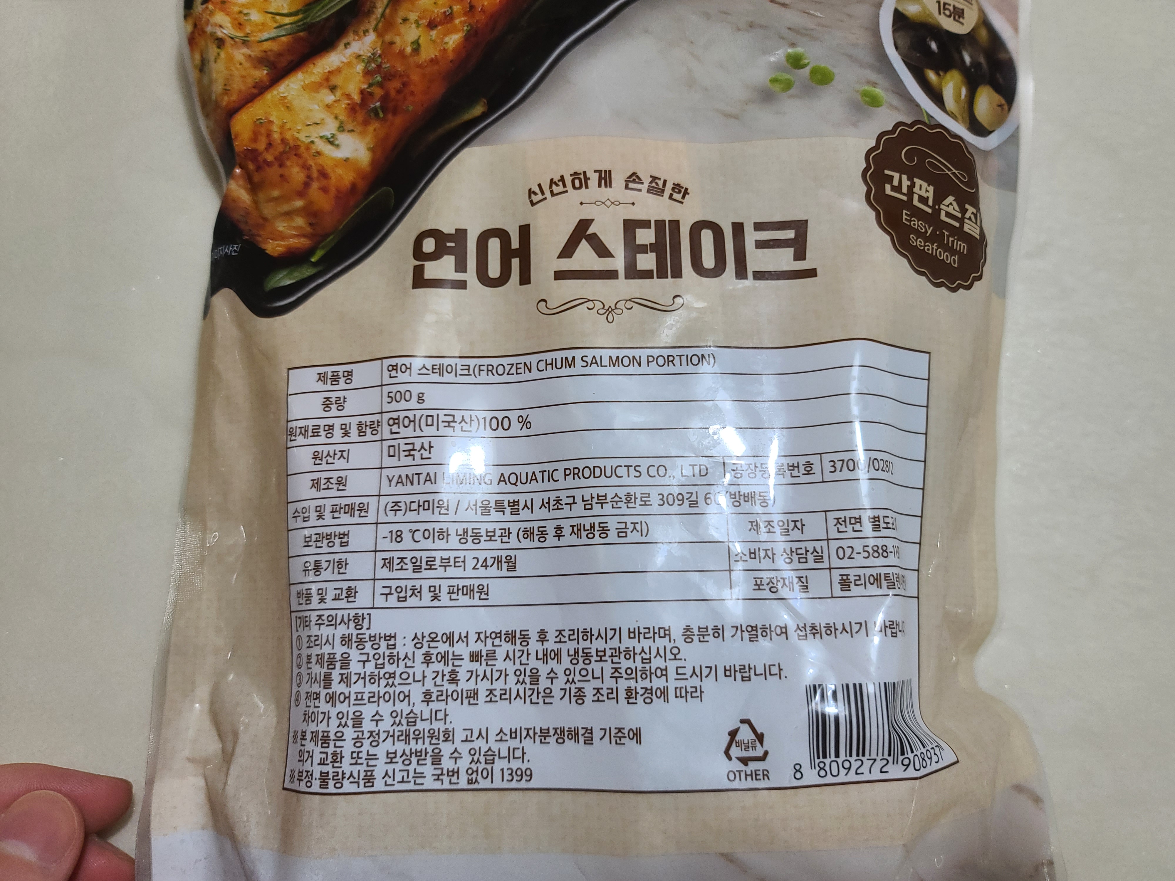 이 연어 스테이크는 자연해동 후 조리해야 한다고 나와있습니다.