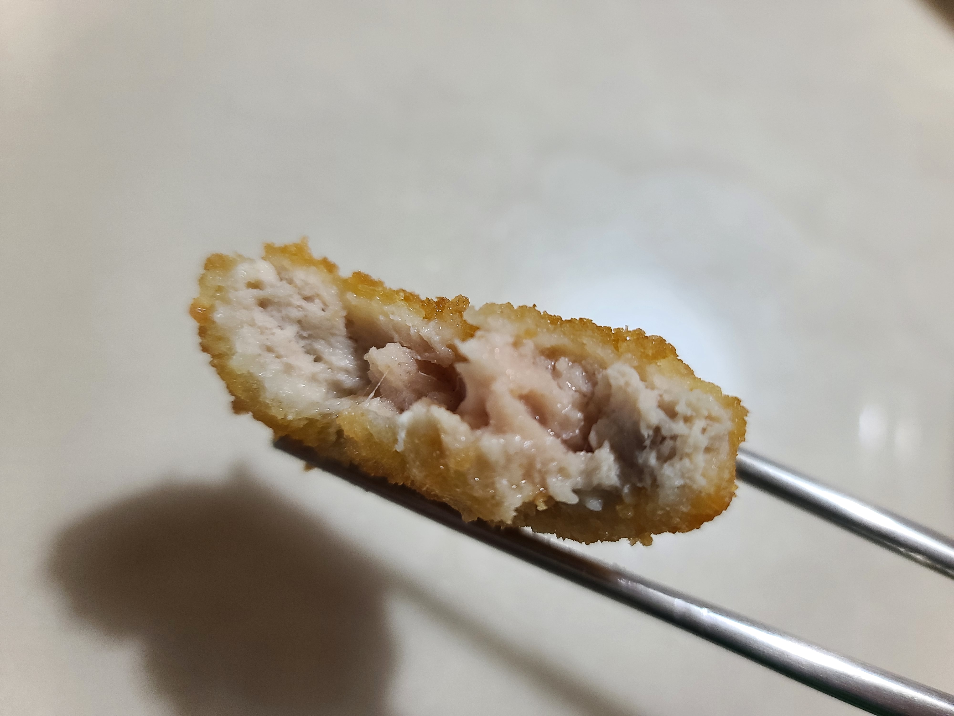 통 돼지고기를 튀긴 것이 아니라 다진 돼지고기를 뭉쳐서 튀긴 것 같다는 느낌이 들었습니다.