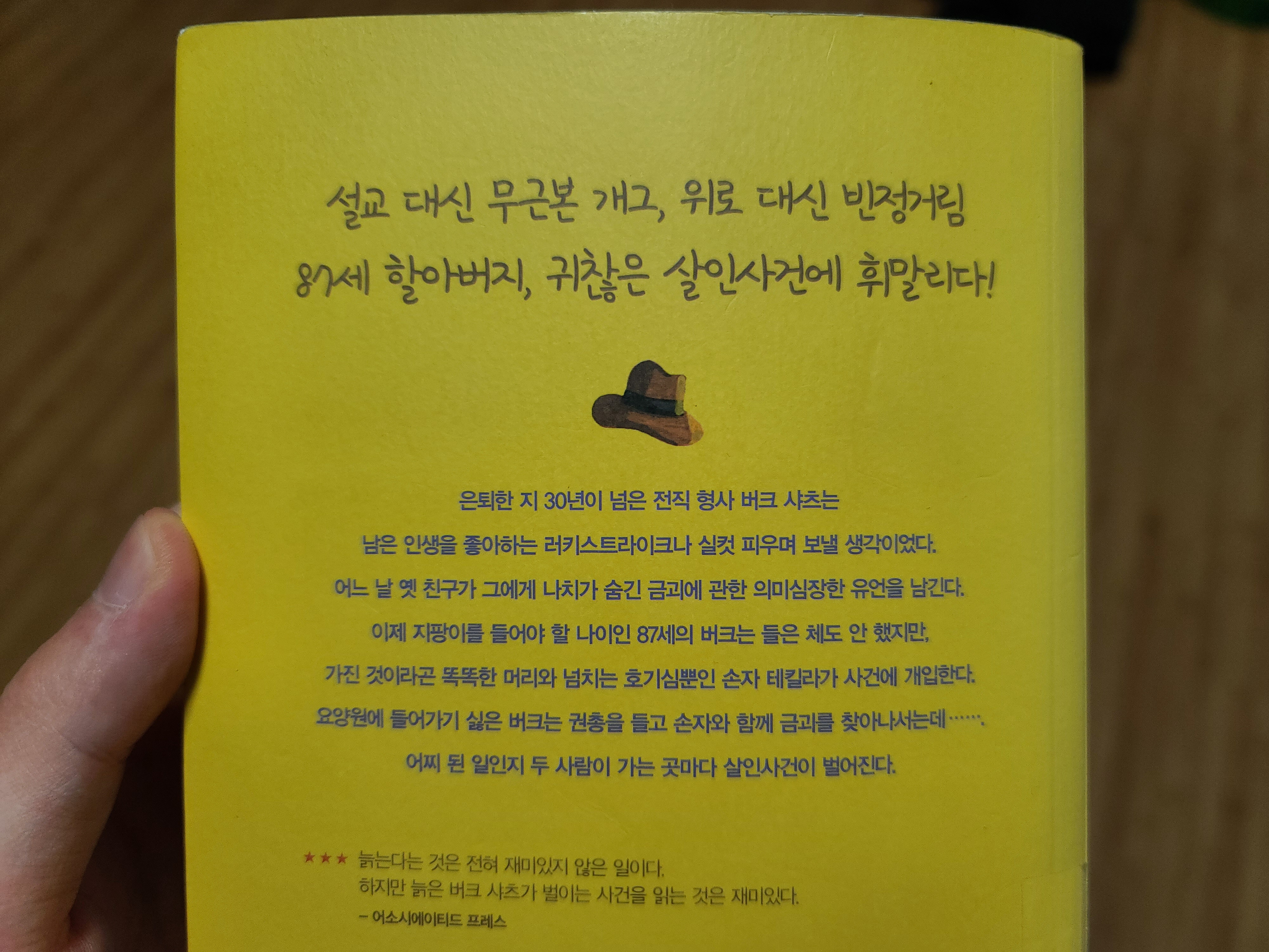 비교적 힘이 없는 노인이라는 캐릭터를 끔찍한 살인사건에 잘 녹여낸 추리소설책.