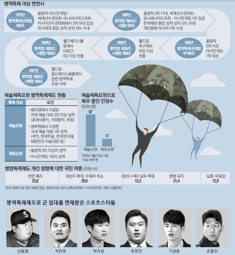 이는 위 사진에 있는 스포츠 스타들의 병역특례가 부정하다는 의미가 아니다.