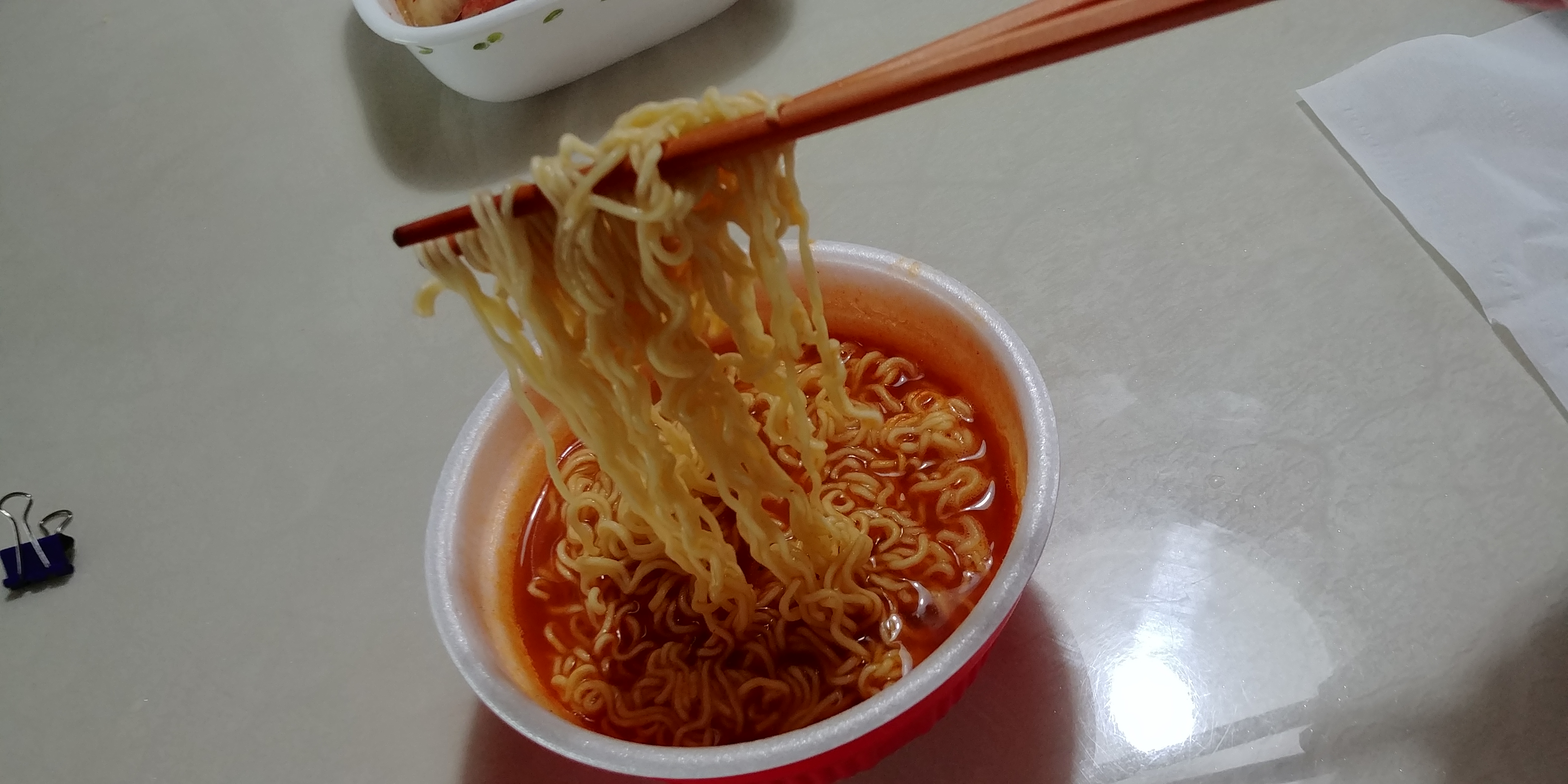 그래도 맛은 맛있습니다. 농심 육개장과 비슷한 맛입니다. 육개장의 특징인 얇은 면발의 맛도 잘 살린 것 같고, 국물 맛도 굉장히 맛있습니다. 물론 조미료 맛이겠지만, 어쨌든 맛있습니다. 역시 라면은 라면입니다.