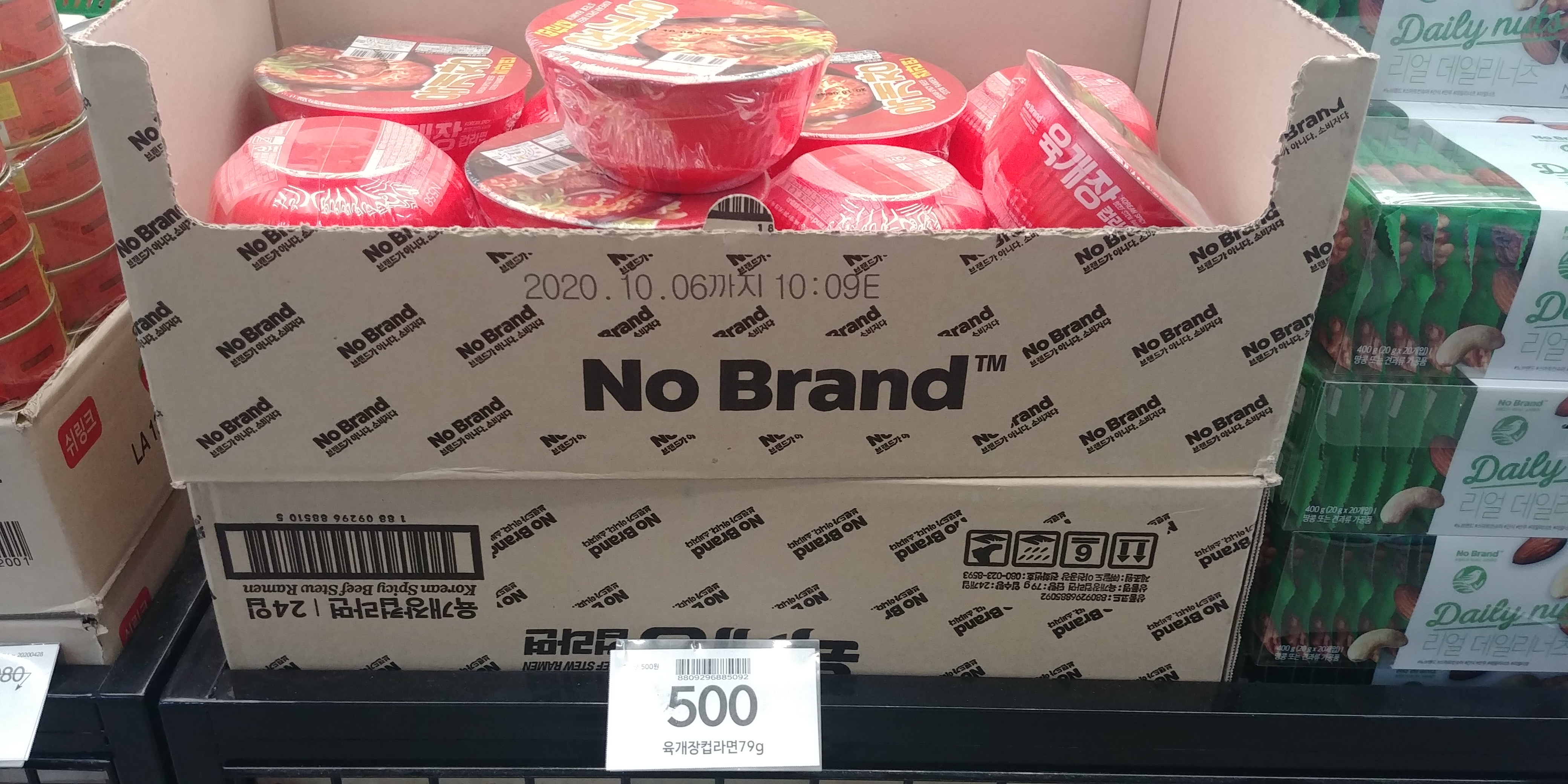 무려 한 개에 500원입니다. 노브랜드 제품의 강점인 '가성비'를 제대로 충족시키는 것 같습니다. 노브랜드 육개장 박스가 두 개 겹쳐있어서 약간 이상하게 찍혔습니다. 아무도 신경 쓰지 않는 부분이지만, 그래도 뭔가 아쉽습니다.